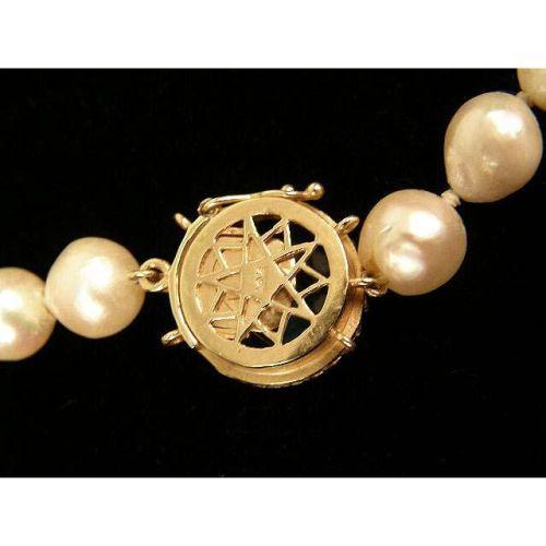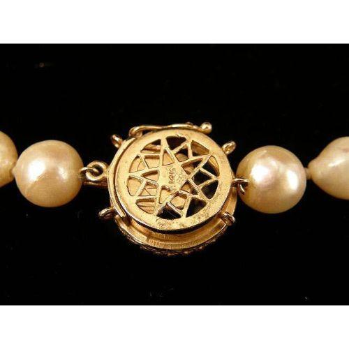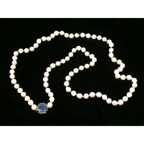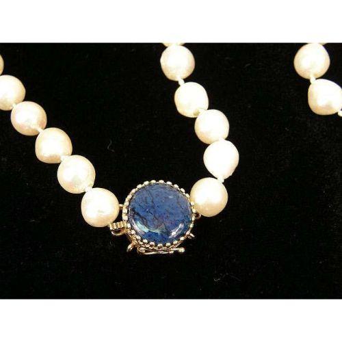 A STRAND OF BAROQUE PEARLS WITH A 14K YELLOW GOLD AND LAPIS LAZULI CLASP<BR><BR>32"long