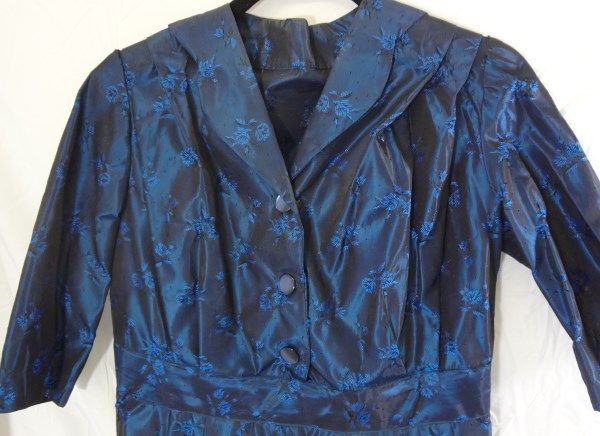 A STUNNING VINTAGE BLUE DRESS. 3/4" LONG SLEEVES. 3 LARGE BUTTONS AT THE TOP. THE DRESS IS ABOUT 40" LONG. THE DRESS IS IN AMAZING CONDITION! NO TEARS OR WEAR!