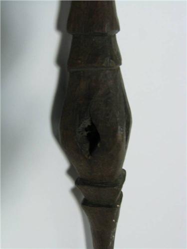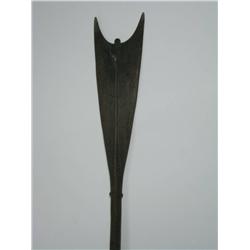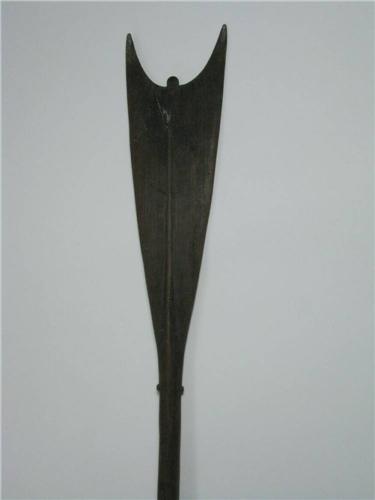 A SUPERB RAMU STEERING OAR, of wood in classic large form, the blade with scalloped terminal and raised medial ridge, smooth patina, PNG, 20x344cm