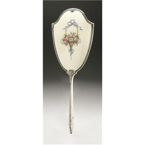 A Saart Bros. Sterling And Enamel Hand Mirror An American Silver And Enamel Hand Mirror