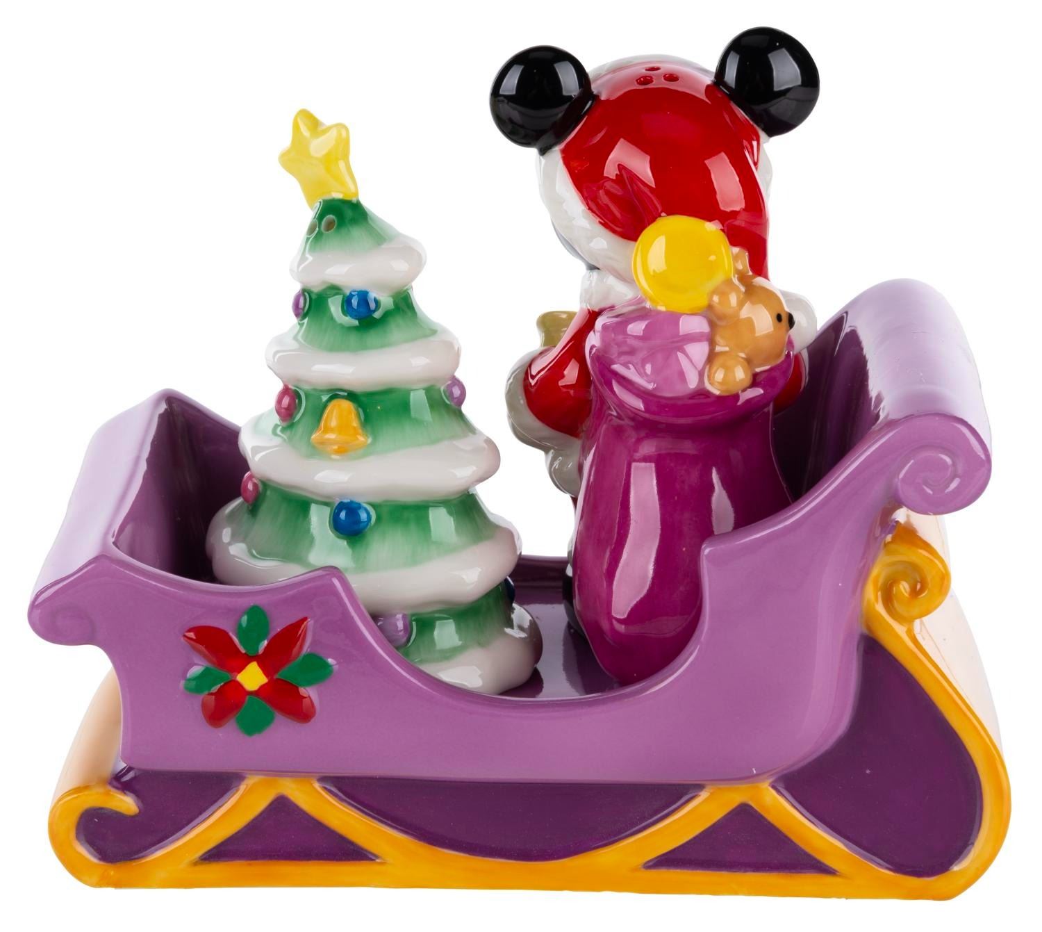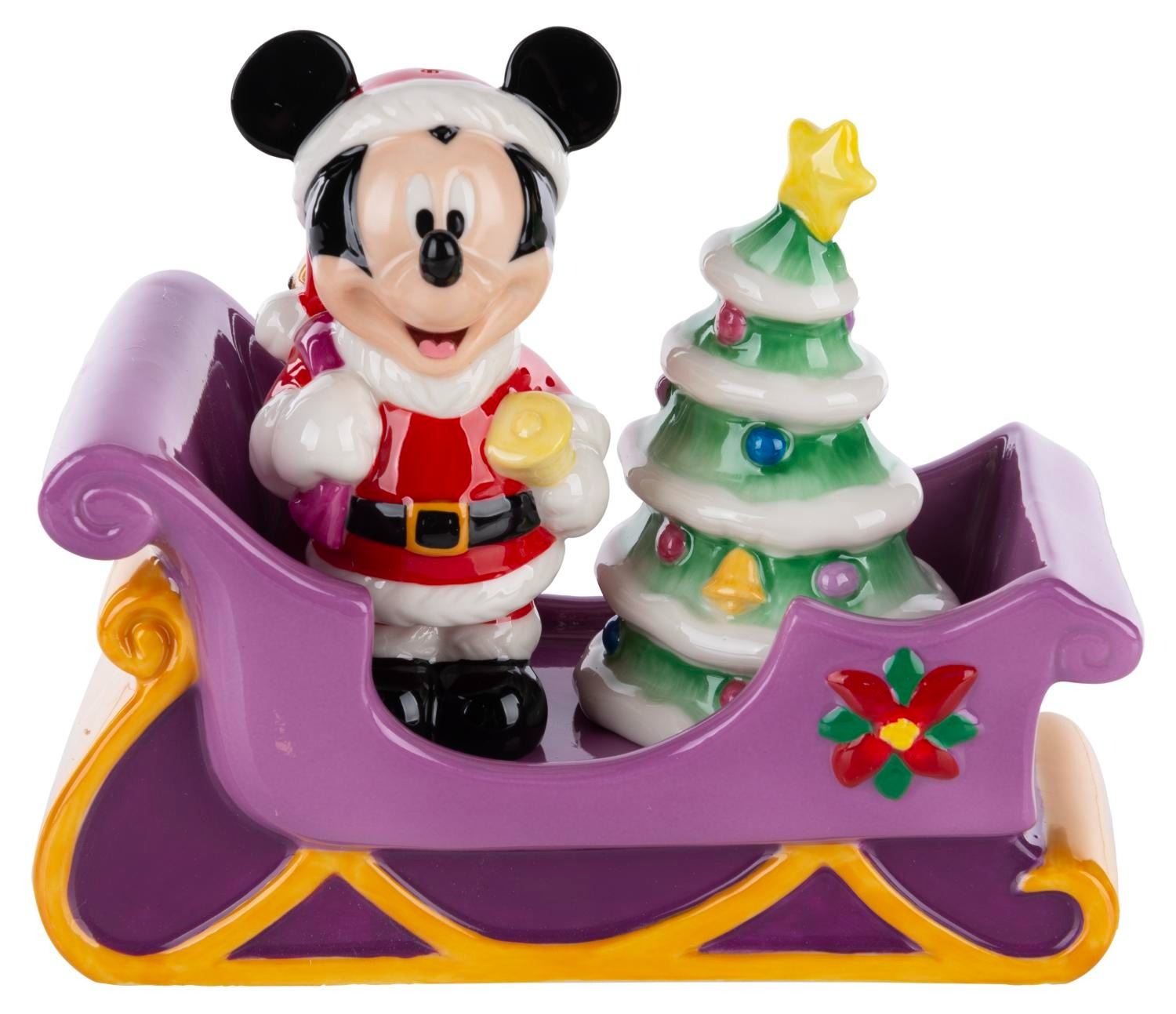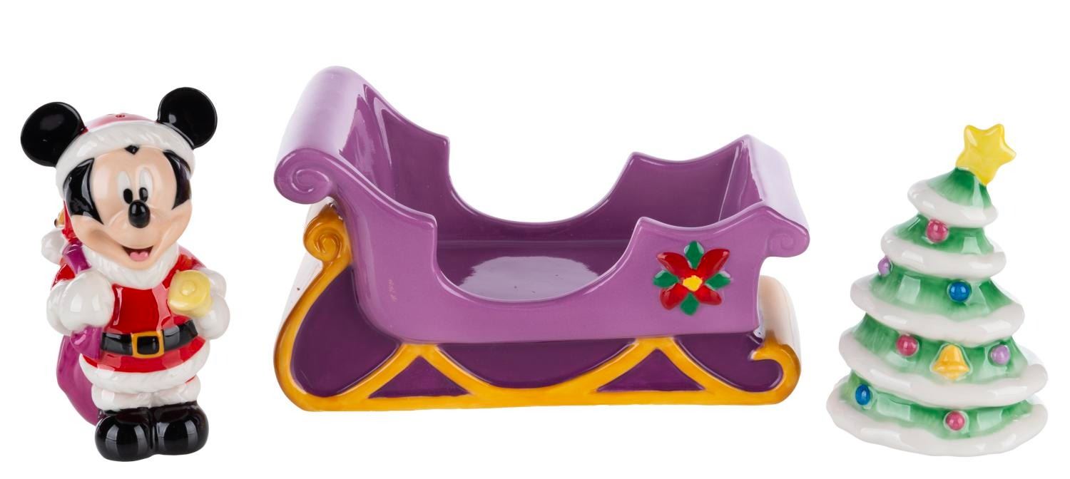 (Disney, 2000s) A Santa Mickey and Christmas Tree shaker set with sleigh, released exclusively by Disney Shopping in a limited edition of only 250. The set measuring 5.5" x 3" x 4.75" overall is in fine condition.