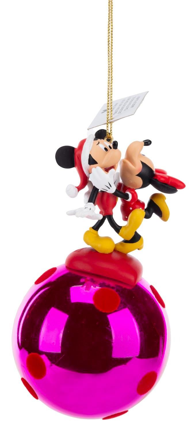 (Disney, 2000s) An ornament of Mickey and Minnie dressed for Christmas atop an ornament bulb. Measuring 3" in diameter x 5.75" tall, the ornament is in fine condition in the original box.