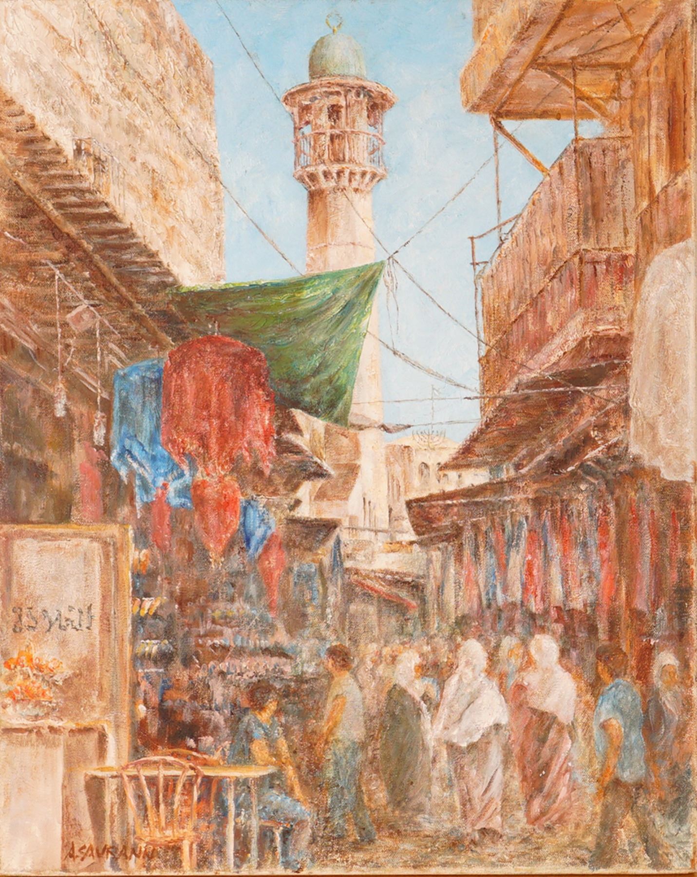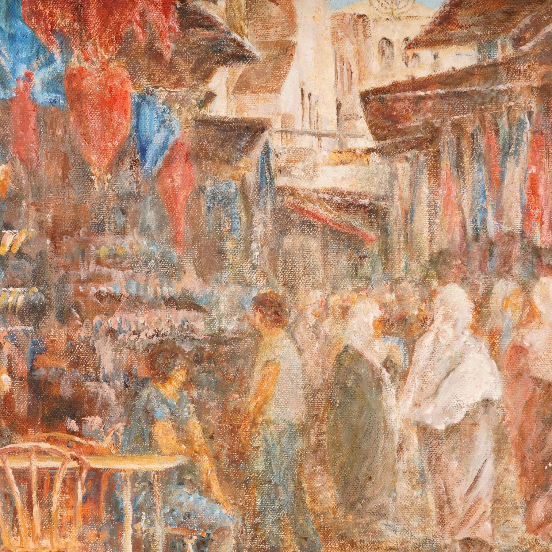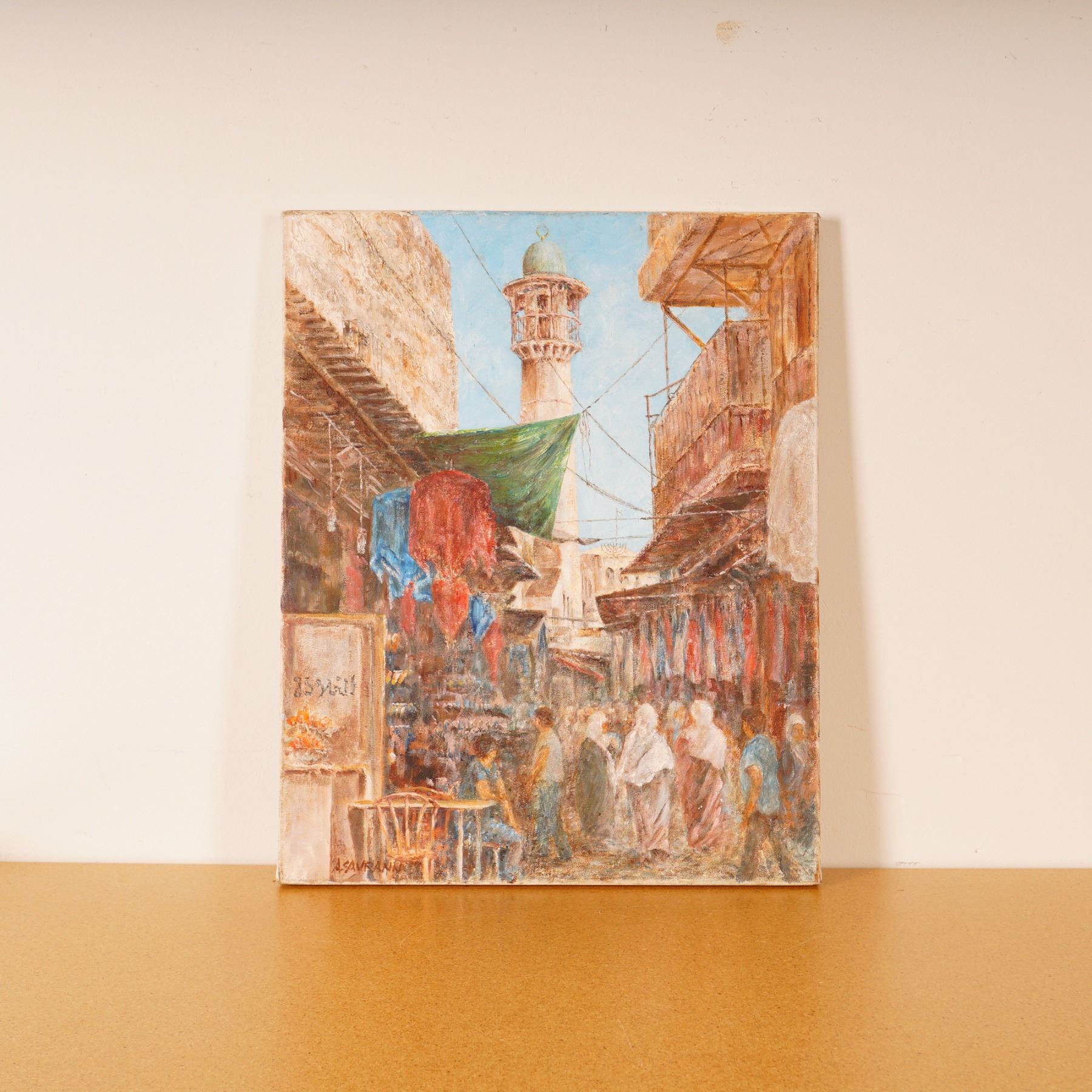 A. Savrann Oil on Canvas Painting, Middle Eastern Market Scene, Signed