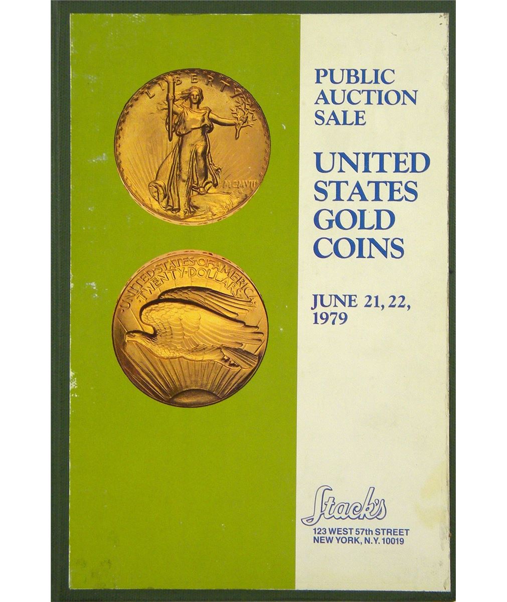 Stack's. UNITED STATES GOLD COINS & U.S. MINOR & SILVER COINS. New York, June 21-22, 1979. 8vo, original green cloth, gilt; original printed card cover mounted on front. 99, (1) pages; 848 lots; illustrated throughout and on 8 color plates; prices realized list. Cover a little worn, else fine. The Special Hardbound Edition. Scarce.