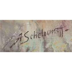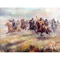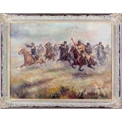 A. Scheloumott (Russian) Oil on Canvas. Cavalry Scene. 24" x 32" signed lower right. Est $3,000 - $4,000.