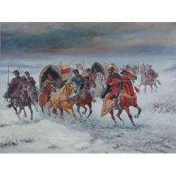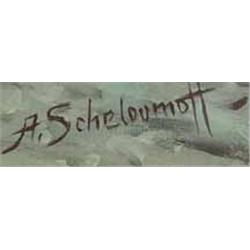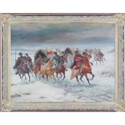 A. Scheloumott (Russian) Oil on Canvas. Cavalry Scene. 24" x 32" signed lower right. Est $3,000 - $4,000.