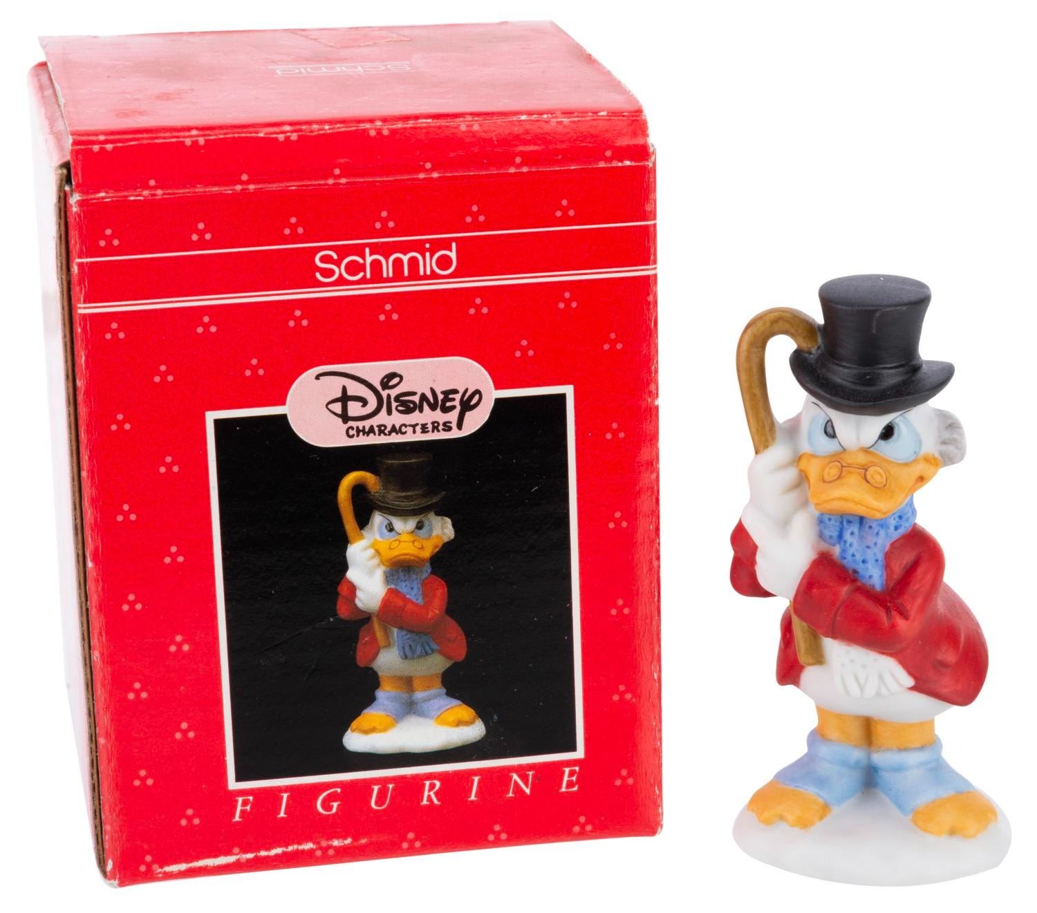 (Schmid, 1980s-90s) A hand-painted figurine of Scrooge McDuck as he appeared in"Mickey’s Christmas Carol." Standing 3" tall, the figurine is in fine condition in the original box.