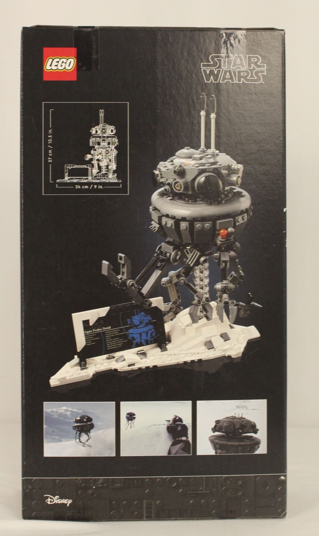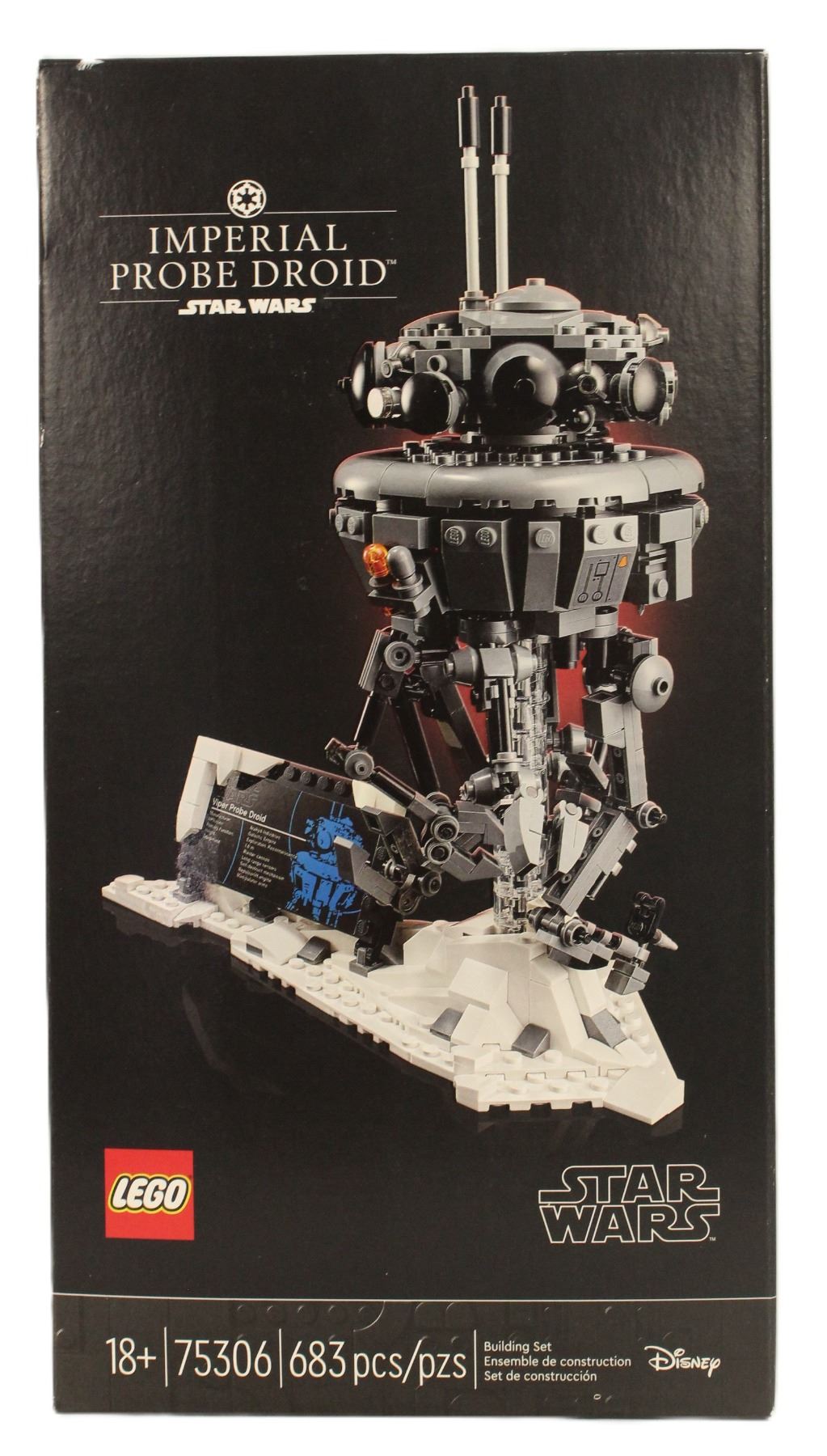 LEGO 75306 Imperial Probe Droid was a 683 piece Star Wars set released in 2021. It consists of a detailed Imperial Probe Droid with posable legs, displayed on a snowy scene stand with a transparent pole and information plaque. It is based on Star Wars: The Empire Strikes Back. It was retired in November 2022.