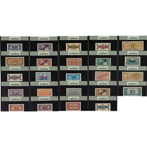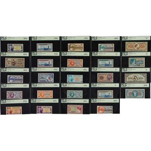 <B>A Second Large MPC Group.</B></I> All have been graded by PCGS. Series 641 Five Cent <B>68PPQ</B></I>, Ten Cent <B>65PPQ</B></I>, 25c <B>66PPQ</B></I>, 50c <B>67PPQ</B></I>, $1 <B>65PPQ</B></I>, $5 <B>45PPQ </B></I>and $10 <B>55</B></I>. Series 661 Five Cent <B>64PPQ</B></I>, Ten Cent <B>68PPQ</B></I>, 25c <B>66PPQ</B></I>, 50c <B>58PPQ</B></I>, One Dollar <B>67PPQ</B></I>, Five Dollar <B>68PPQ </B></I>and $20 <B>50</B></I>. Series 681 Five Cent <B>63</B></I>, Ten Cent <B>67PPQ</B></I>, 25c <B>67PPQ</B></I>, 50c <B>62 </B></I>and One Dollar <B>63</B></I>. Series 692 Five Cent <B>67PPQ</B></I>, Ten Cent <B>65PPQ</B></I>, 25c <B>68PPQ</B></I>, 50c <B>66PPQ </B></I>and One Dollar <B>50</B></I>.<BR><I>From The Thomas M. Flynn Collection</B></I><BR><BR><b>Shipping:</b> Coins & Currency (<a target="_blank" href="http://www.heritageauctions.com/common/shipping.php">view shipping information</a>)