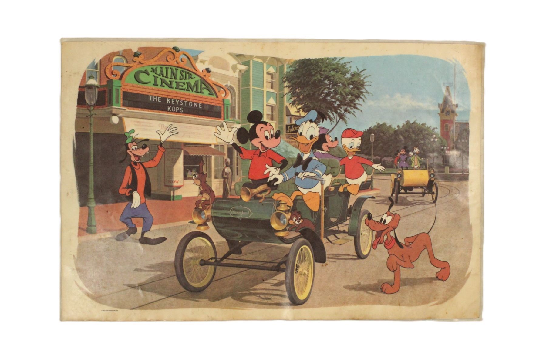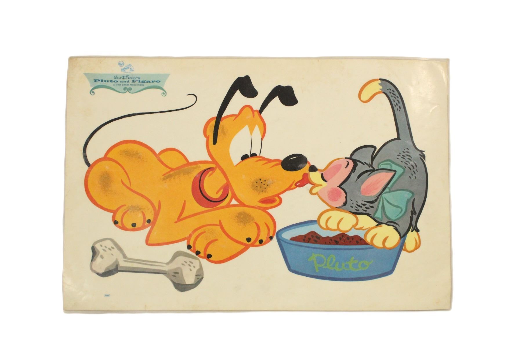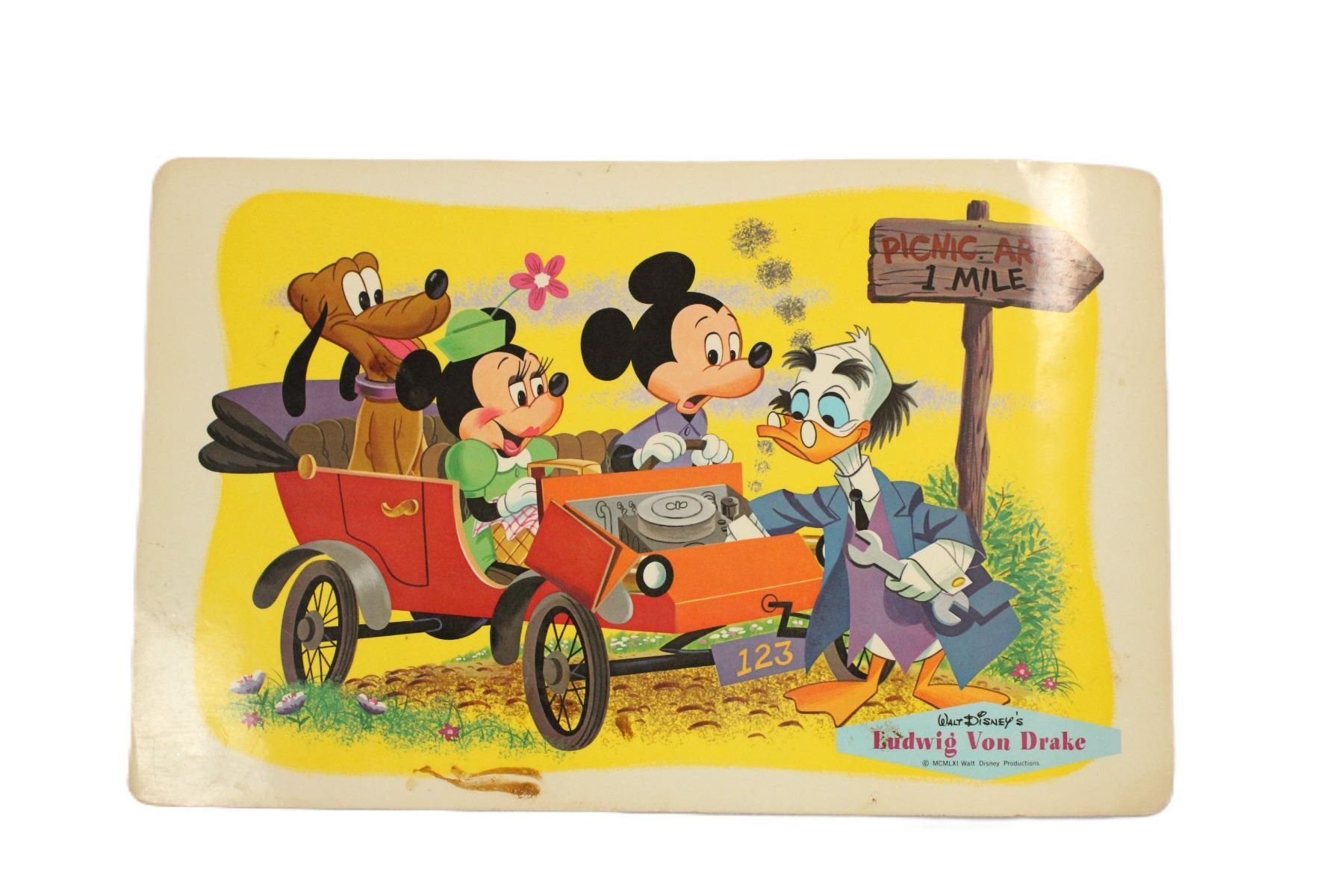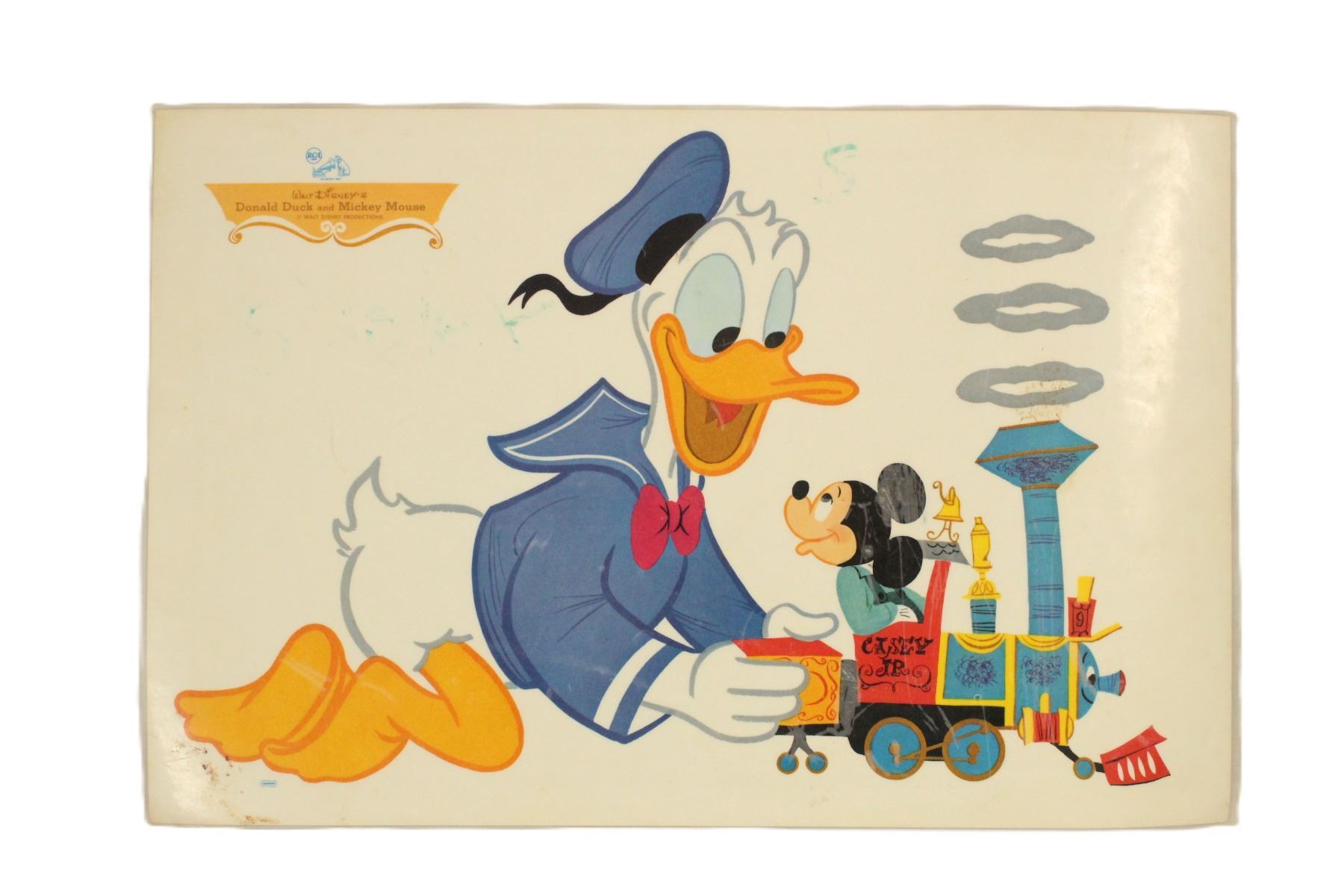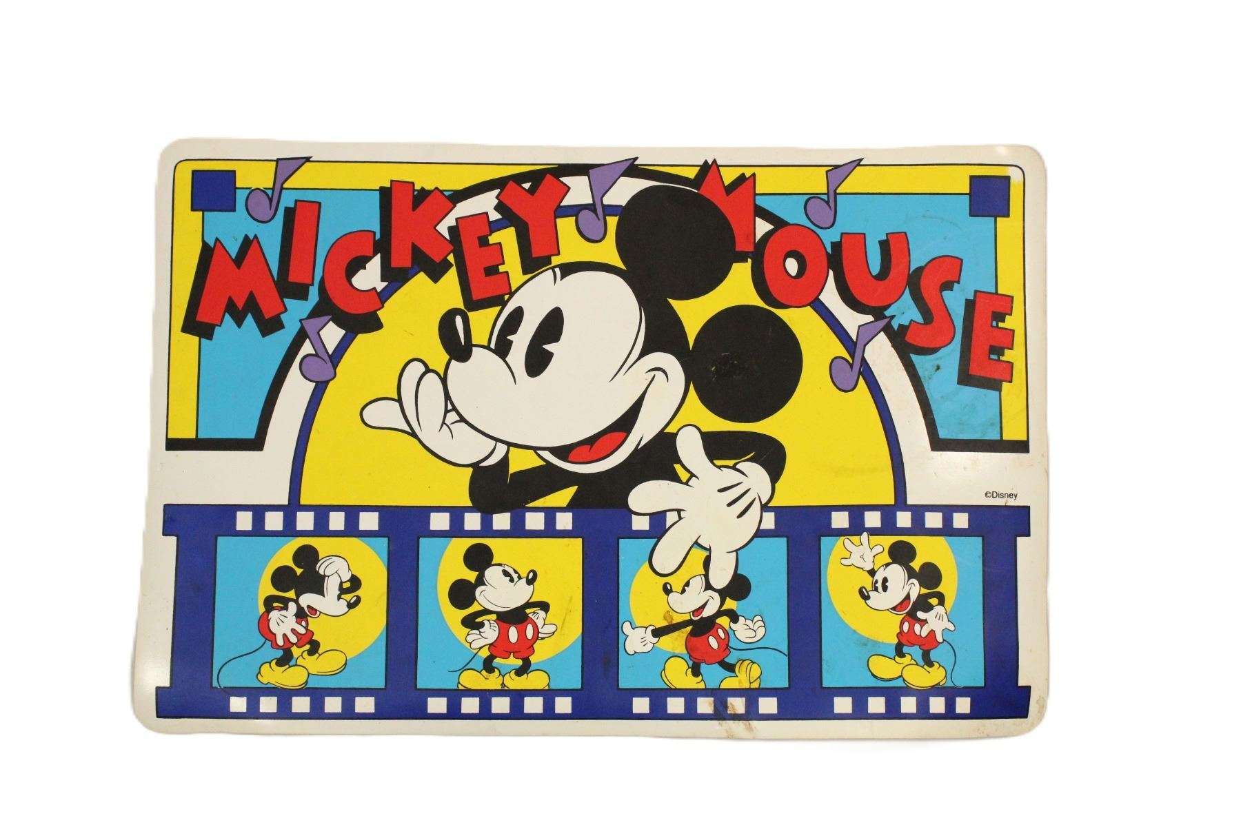Here are five placements displaying classic characters, scenes from around the parks or from their animated features. 3 of the placemats are laminated and 2 are vinyl rubber. They show signs of wear and discoloration from age and use.