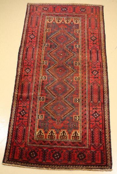 A Semi Antique Persian Baluch Wool Rug. 3 ft 1 in x 6 ft 9 in