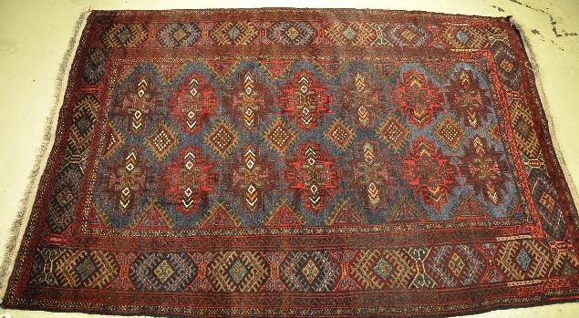 A Semi Antique Persian Baluch Wool Rug. 4 ft 10 in x 7 ft 1 in