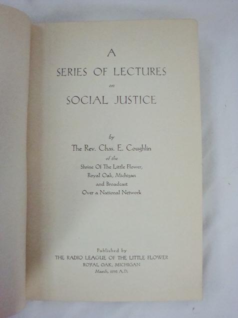Book Description: Royal Oak Michigan: The Radio League of The Little Flower, 1935, 1935. Wrappers. Very Good Plus. First Edition. 8vo - over 7¾" - 9¾". 244 pp. Nineteen of the author's broadcasts, dedicated to members of the National Union For Social Justice, broadcast during the depression) Covering subjects such as: Slavery, Paying a living wage, World Courts, President Roosevelt and Social Justice, etc. A Nice clean, tight copy.