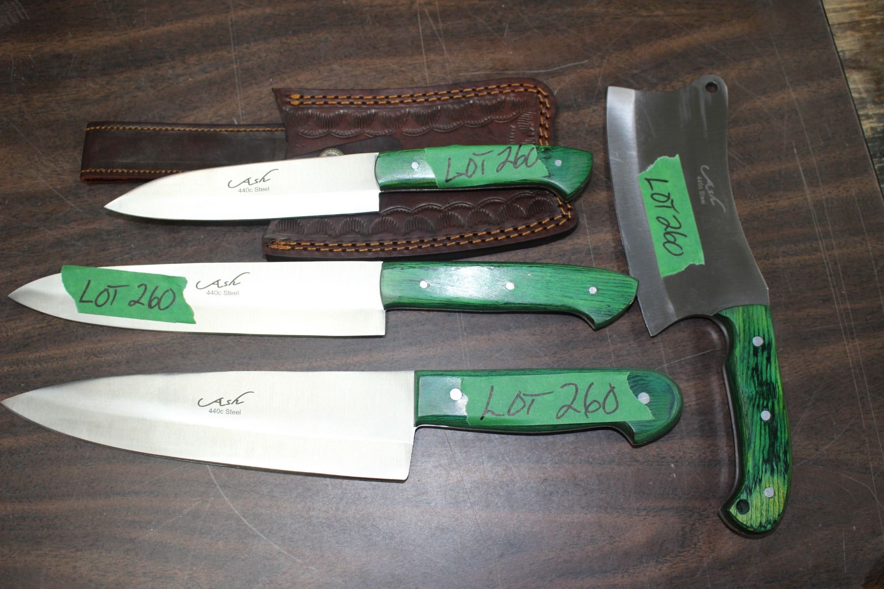 A Set of 3 Ash 440 Steel Kitchen Knives & a Clever