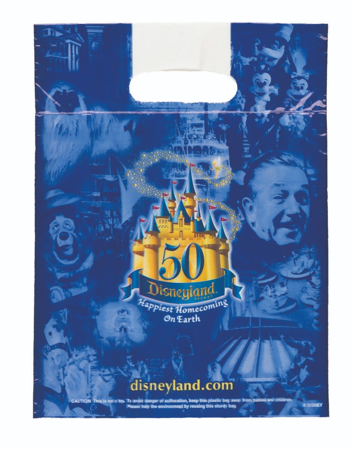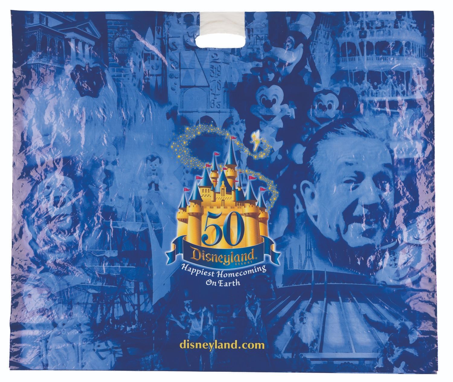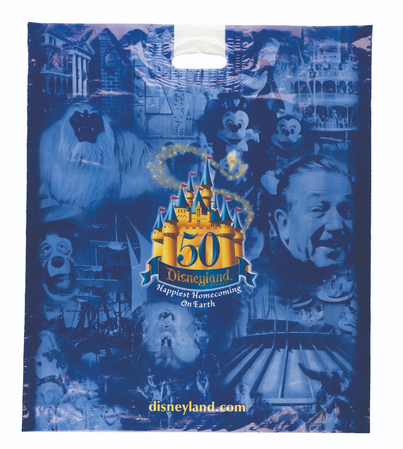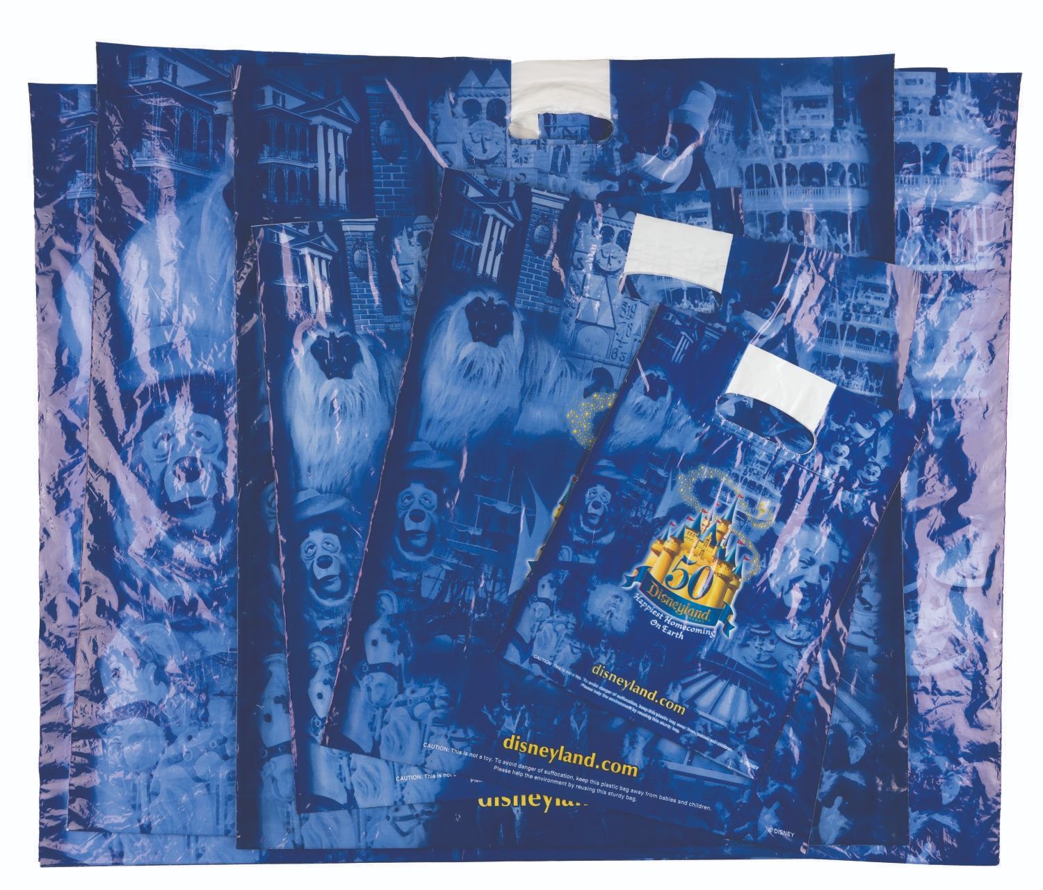 (Disneyland, 2005) A collection of six plastic merchandise bags from Disneyland’s 50th anniversary in 2005. Measuring from 9” x 11.75" to 24” x 28", the bags are in good condition with creases from use and handling.