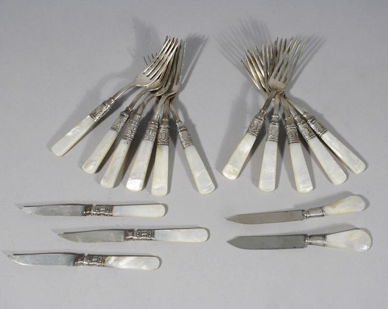 A Set of Eleven Sterling Silver Forks, Together with Five Miscellaneous Knives.