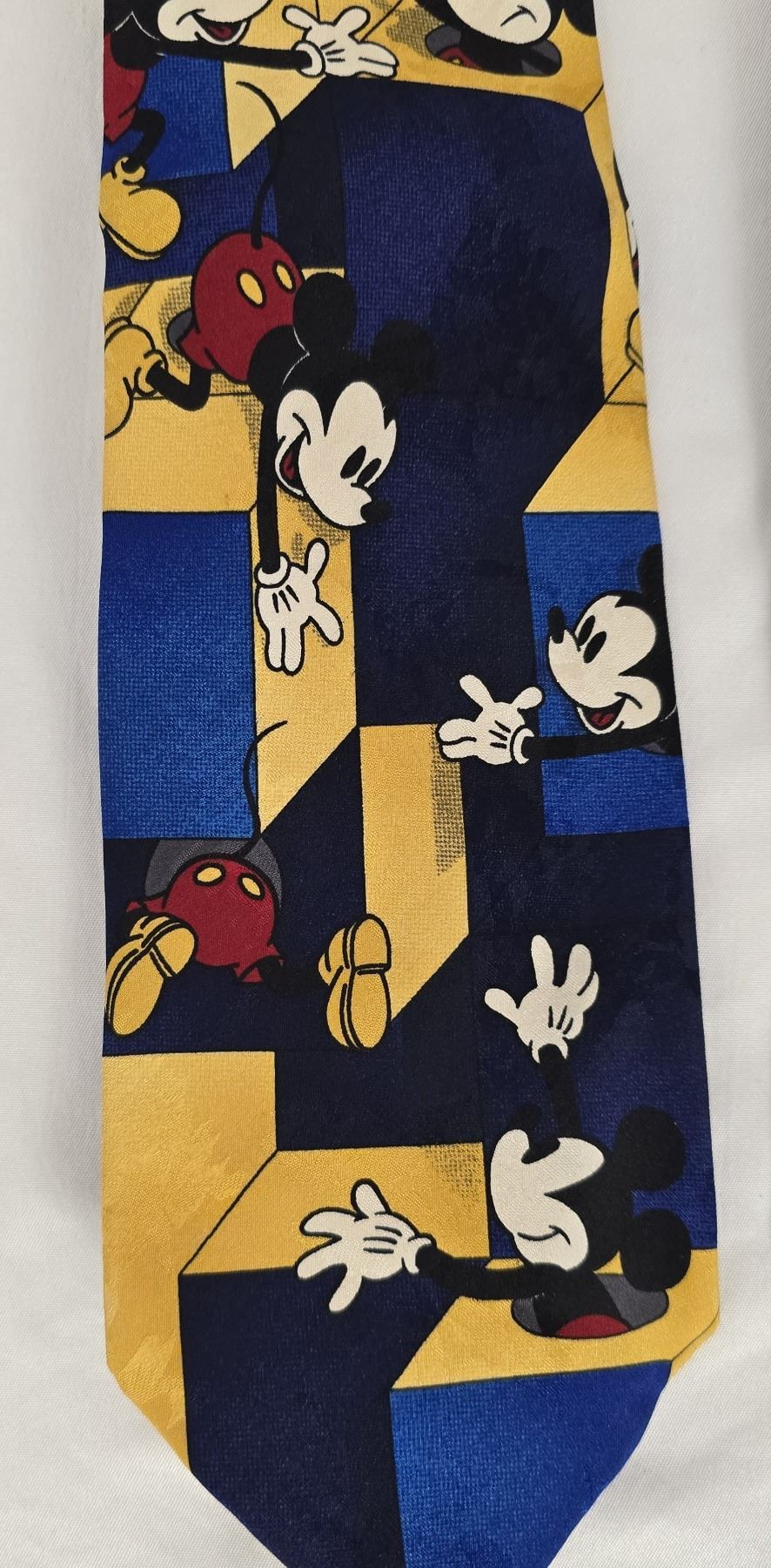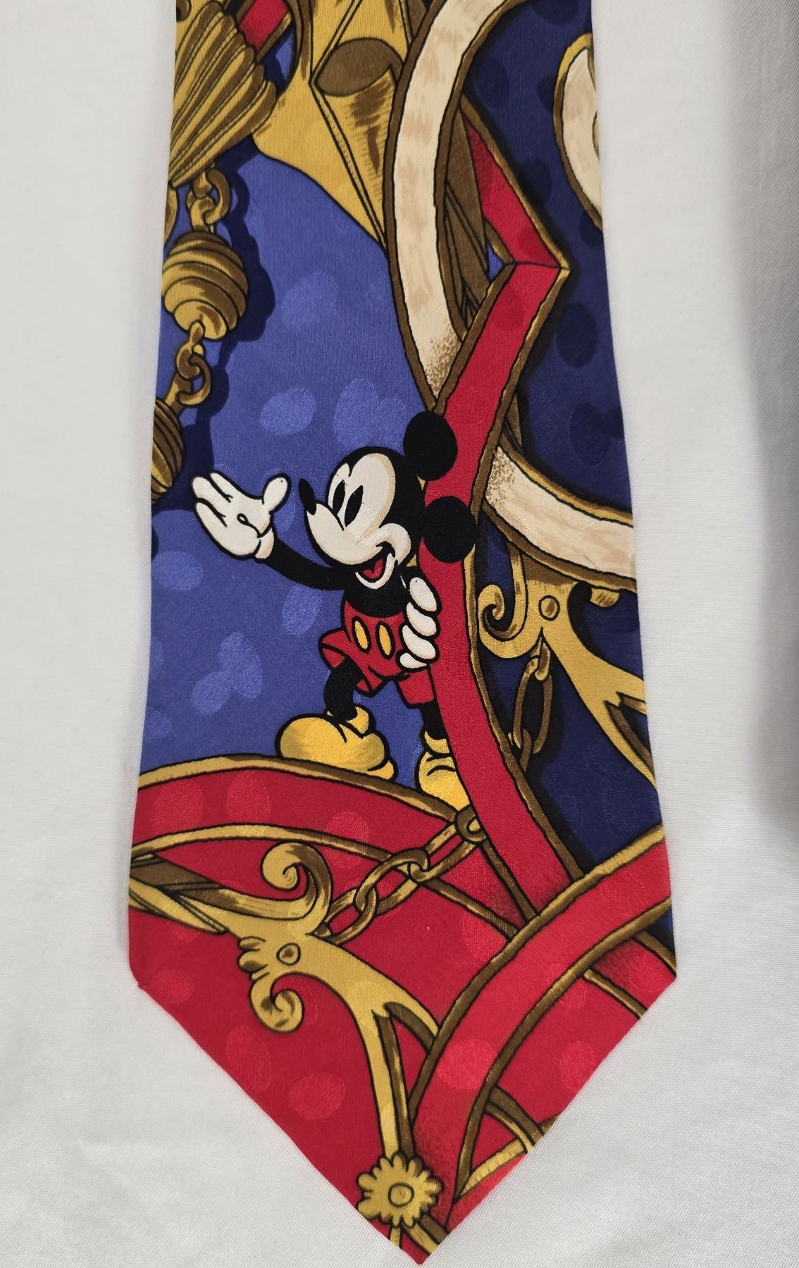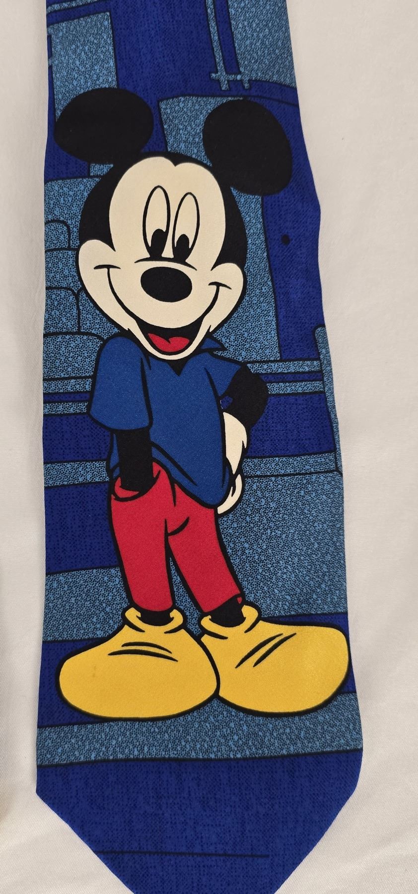 This is a set of 4 silk ties with blue as the primary color. They all feature Mickey Mouse. They are all used and in good condition. Total folded measurement is 10" x 4" x 3" and they weigh 5 oz.