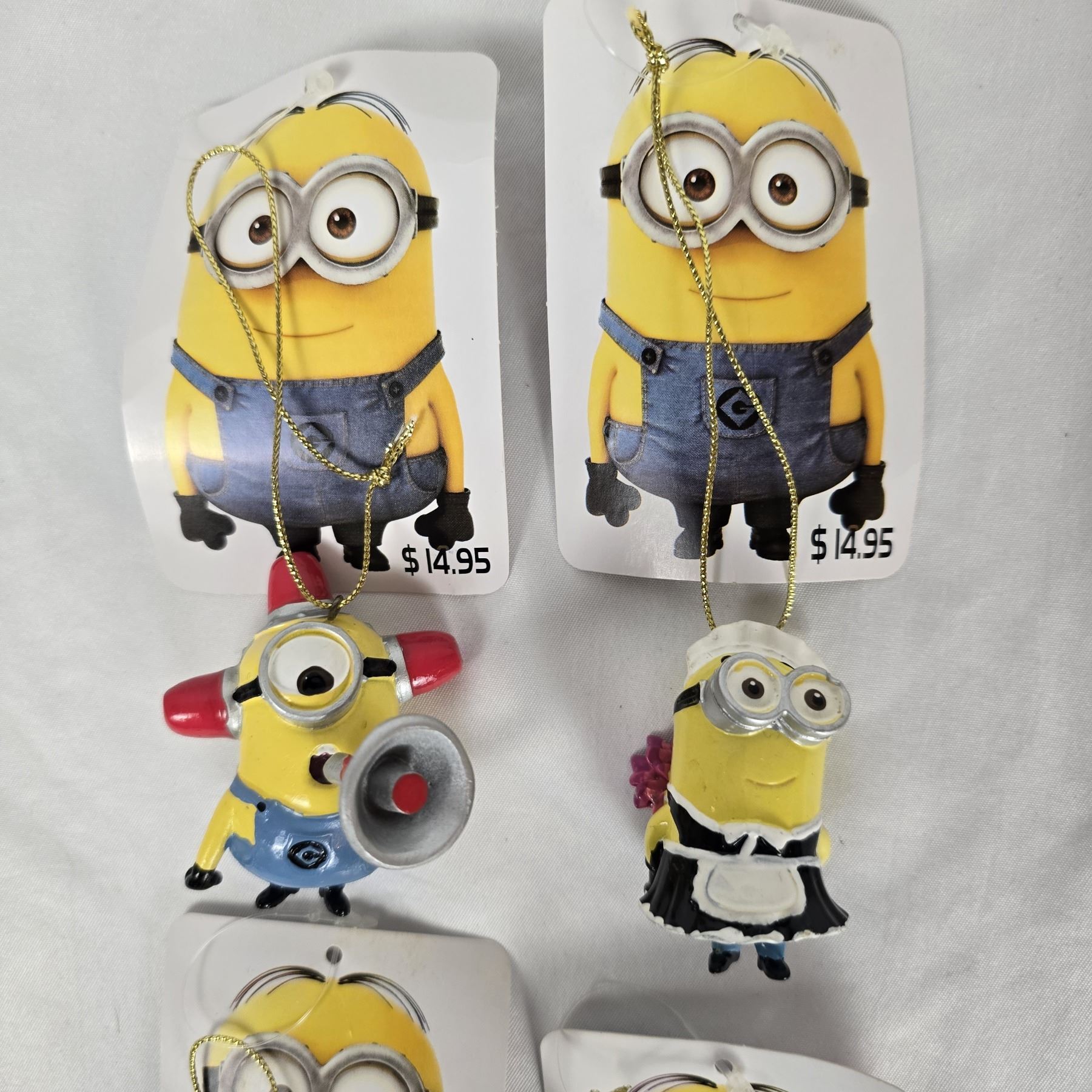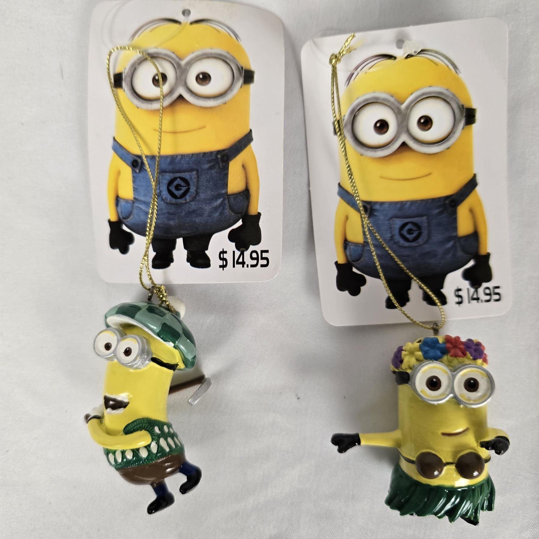 This is a set of 4 PVC Minion ornaments featuring the minions in various outfits as seen in the feature films. Each ornament measures 2" to 2.5" tall. The packed measurement is 4" x 7" x 2.5" and the total weight is 2.5 oz.