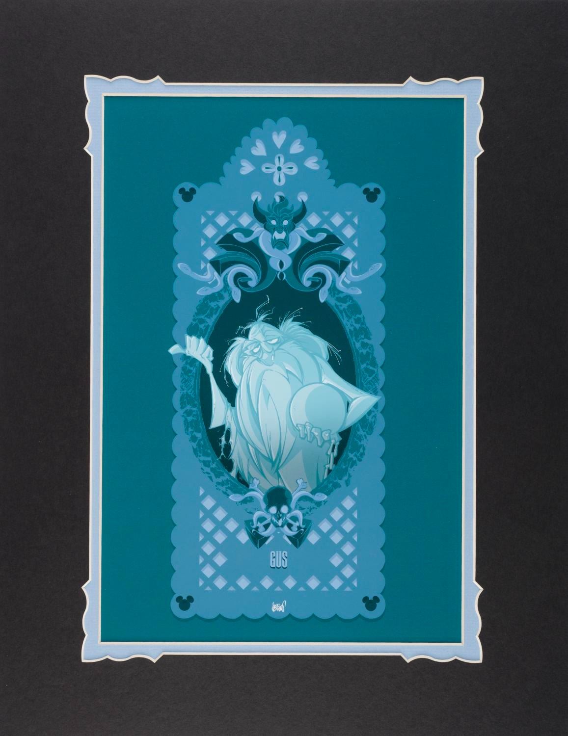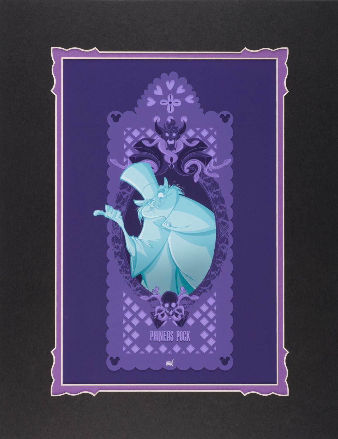 (The Art of Disney Theme Parks, 2018) A set of four Haunted Mansion Prints by Francisco Herrera featuring Phineas Pock, Gus, Ezra, and Hatbox Ghost. These were initially released through WonderGround Gallery. Each piece comes with its 14"x18" matte and is in fine condition.
