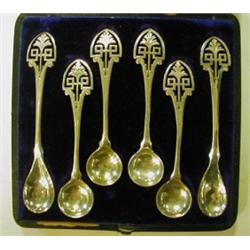 A Set of Six Victorian Silver Condiment Spoons, with pierced anthemion finials, Sheffield 1873, boxed £20 - 40