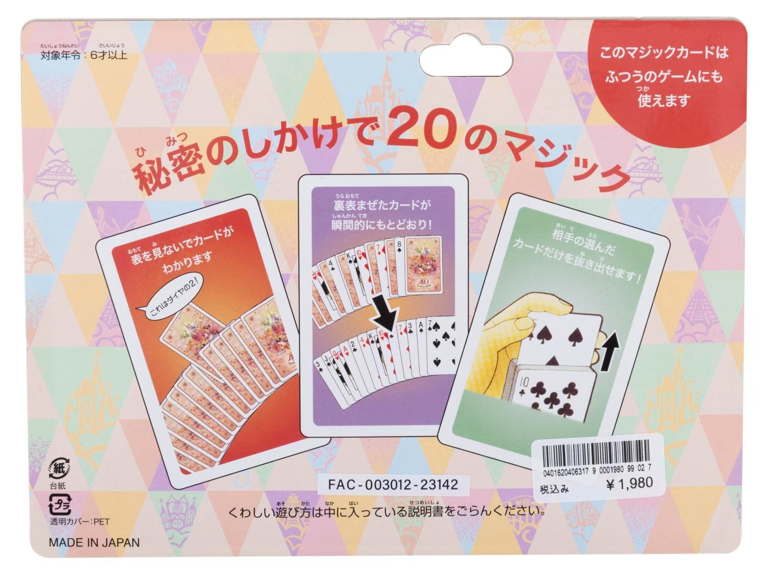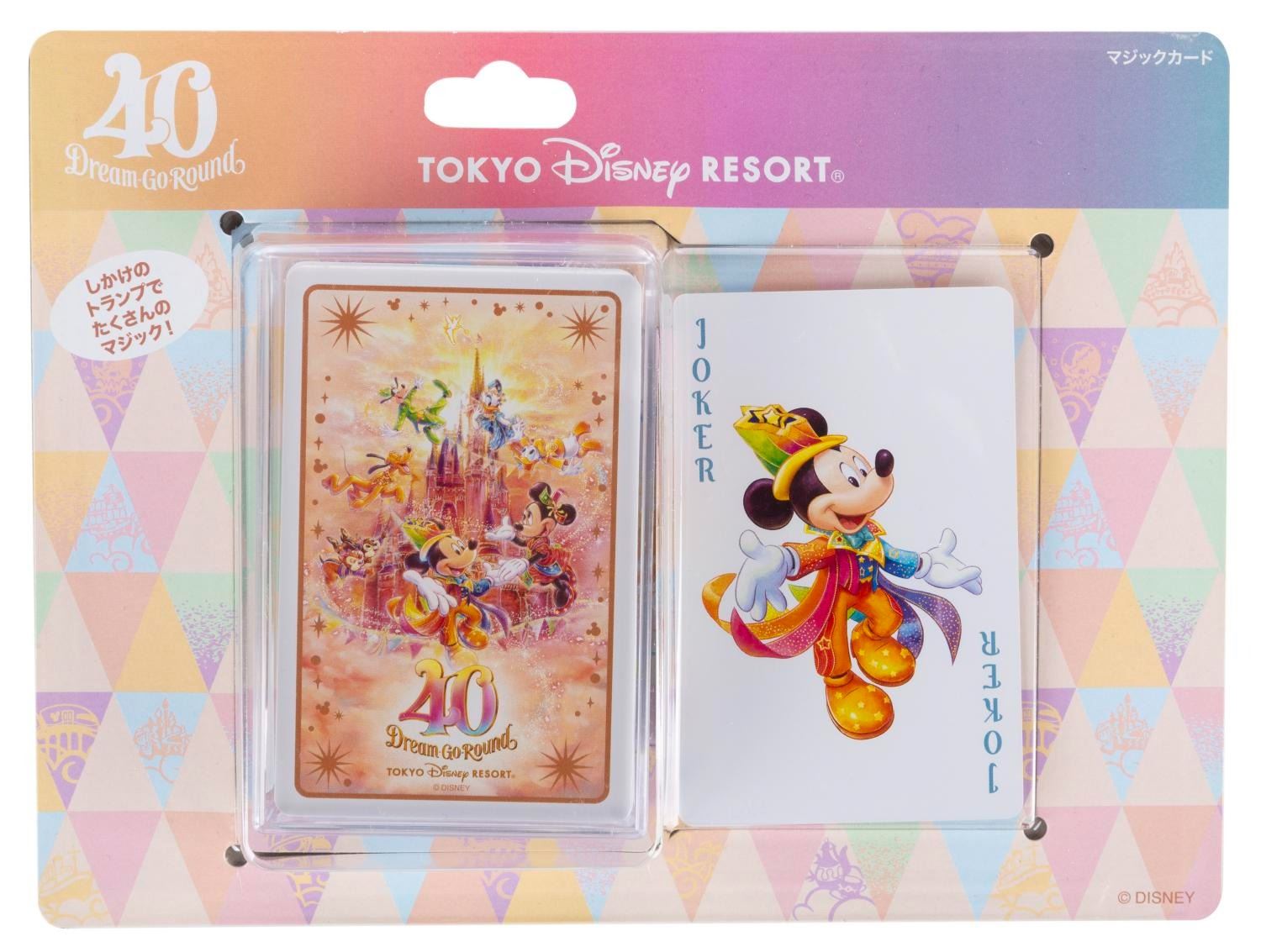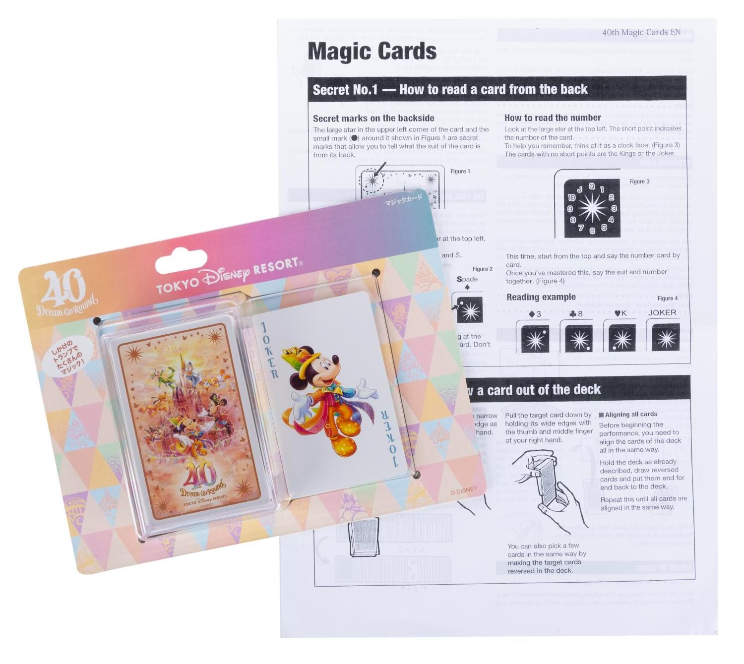 (Tokyo Disney, 2023-24) A set of Tokyo Disney 40th Anniversary Dream-Go-Round magic playing cards. Included is a page of English instructions on how to use the cards for a variety of tricks. Measuring 6" x 7.75" x 1", the cards are in fine condition, sealed in their original packaging.