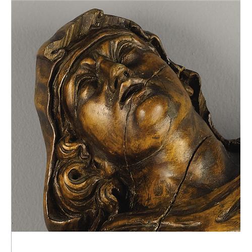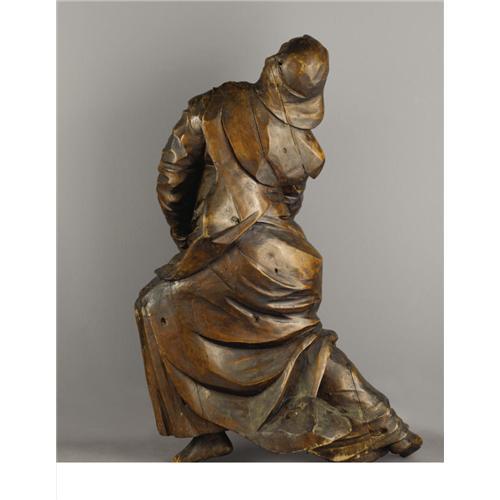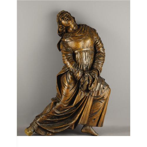<B>A Seventeenth Century Carved Figure of a Woman</B></I><BR><BR>Unknown maker, Italy<BR>Seventeenth Century<BR>Fruitwood<BR>Unmarked<BR>38 in. high<BR><A carved figure of a lamenting woman gazing upwards.1 <BR><BR><B>Condition Report:</B> Normal signs of wear as appropriate with age. Restoration and damage.