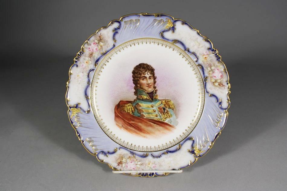 A Sevres Porcelain Painted Plate Depicting Prince Murat, Together with a Porcelain Creamer and Sugar and Tray.