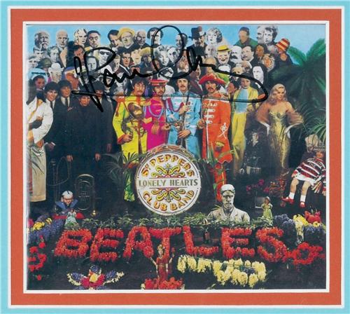 Here is a box for The Beatles’ CD release entitled ‘Sgt. Pepper’s Lonely Hearts Club Band’. Paul has signed the front of the box very nicely at the top in black sharpie marker. This signature was obtained in person in London in late 2006. ‘Sgt. Pepper’ related items signed by Paul McCartney are extremely desirable. EX condition. Comes with an LOA from Frank Caiazzo.