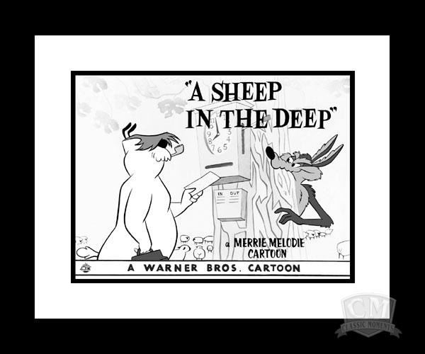 This framed limited edition 16x20 giclee lobby card entitled “A Sheep in the Deep" is a 1962 Merrie Melodies cartoon directed by Chuck Jones and Maurice Noble and released by Warner Bros. Pictures featuring Ralph Wolf and Sam Sheepdog. This edition is lim