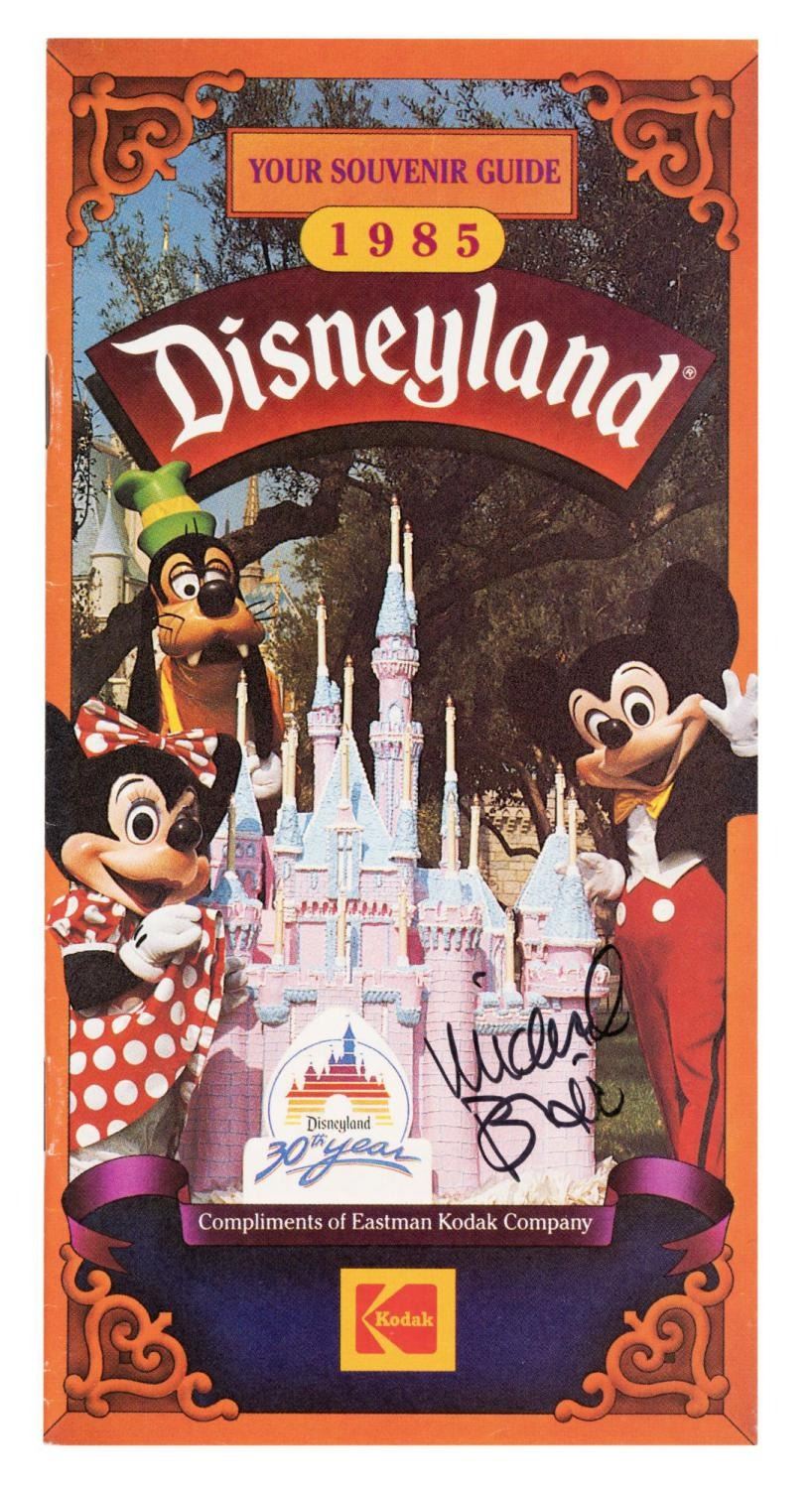 (Disneyland, 1985) A Disneyland souvenir guide signed by Michael Blair, the artist who created the Park’s 30th anniversary logo. Measuring 3.75” x 7.5”, the guidebook displays in very good condition with light wear.