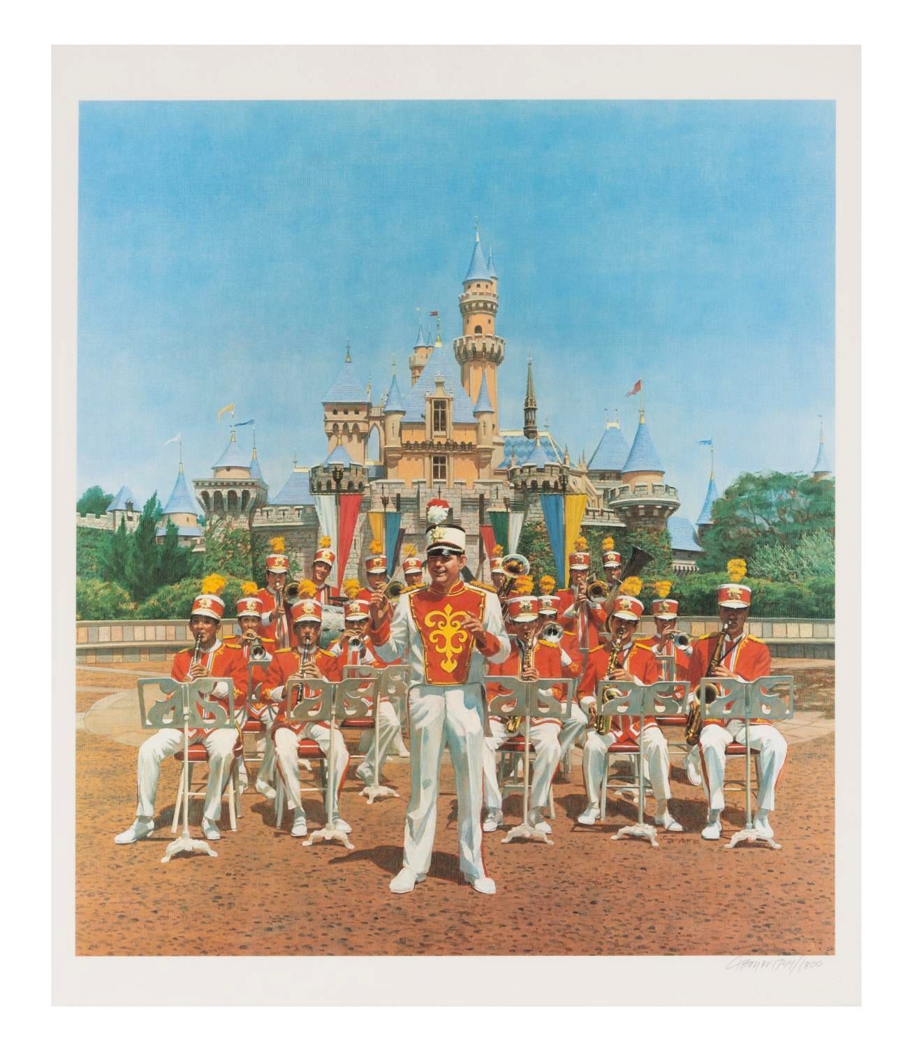 (Disneyland, 1982) A Charles Boyer lithograph titled "Walt's Music Makers" commemorating the 50,000th performance of the Disneyland Band. Hand-signed in graphite by Boyer and numbered 1774/1800, the 21.5” x 25.25” lithograph displays in very good condition with a 1" tear and very minor wear along the bottom edge.