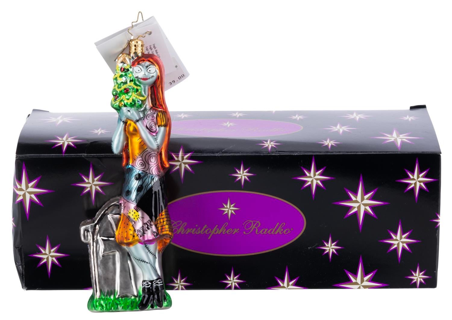 (Radko, 2003) An ornament of Sally from"Tim Burton's The Nightmare Before Christmas," signed on the base by designer Christopher Radko. Standing 6" tall, the glass ornament is in fine condition with the original box.