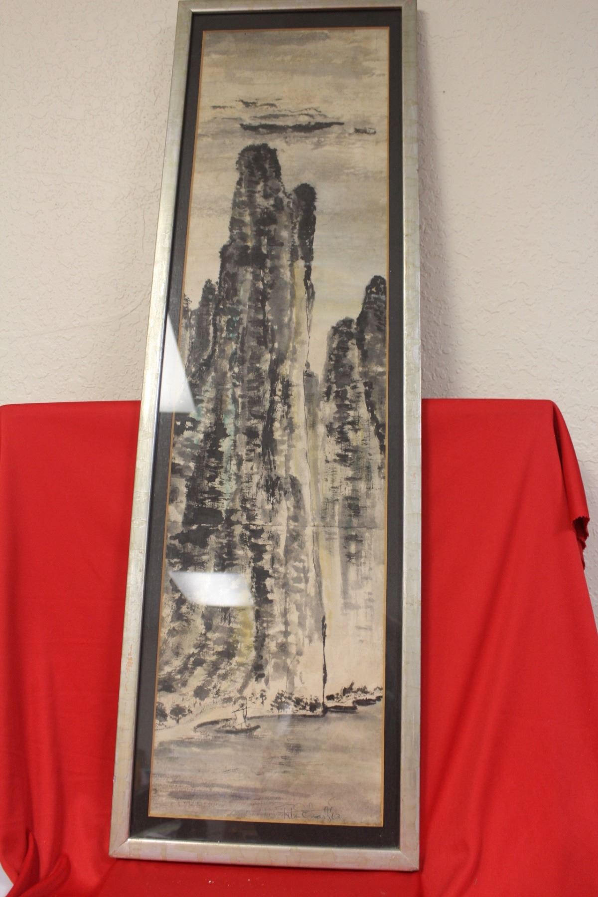 Looks to be watercolour - 38 1/2" x 11 1/2" - signed and dated 1963 - most likely on rice paper
