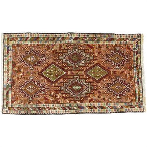 <B>A Turkish Kilim<BR></B></I>Unknown maker, Turkey<BR>Twentieth Century<BR>Wool, cotton<BR>Unmarked <BR>89 inches high x 56.25 inches wide <BR> <BR>The flat woven rug with stylized plant decoration on a brick red ground, beige border.<BR><BR><BR><b>Shipping:</b> Requires 3rd Party Shipping (<a target="_blank" href="http://www.heritageauctions.com/common/shipping.php">view shipping information</a>)