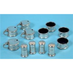 A Silver Condiment Set, of plain cylindrical form, comprising four pepper pots, four salts, and four