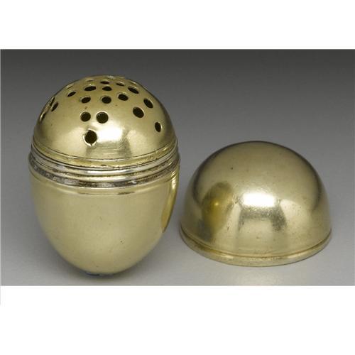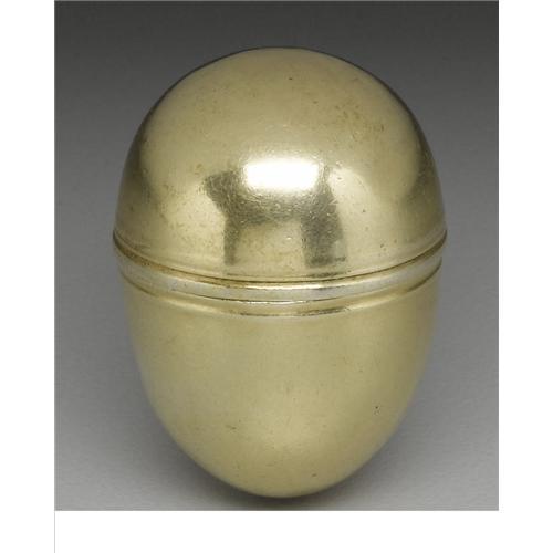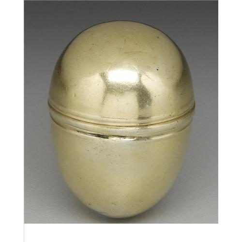 <B>A Silver Gilt Vinaigrette</B></I> <BR><BR>Unknown maker, possibly England<BR>Nineteenth Century<BR>Silver gilt<BR>Unmarked<BR>1.25 in. long, .36 troy ounces<BR><BR>In the shape of an egg; punch pierced grill.
