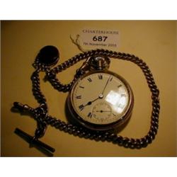 A Silver Open Face Silver Pocket watch, with enamel dial and Roman numerals, Birmingham 1919, and a silver watch chain and fob £30 - 50