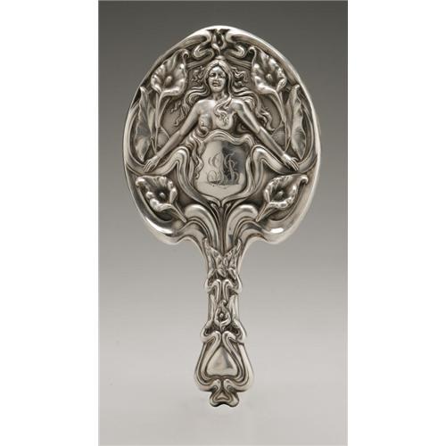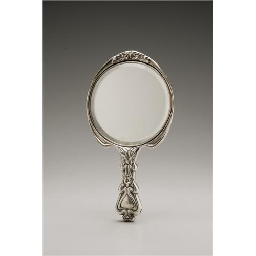<B>An American Silver Hand Mirror</B></I><BR><B>Simons, Bro. & Co., Philadelphia, PA, Late Nineteenth Century</B></I><BR><BR>Monogram to the reverse <I>GJ,</B></I> hallmark to the side with <I>STERLING 1600 PAT. PEND.</B></I><BR>10.2in. long x 5.3in. wide
