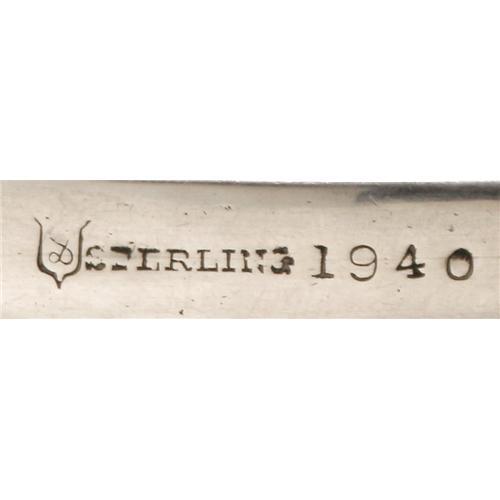 <B>An American Silver Hand Mirror</B></I><BR><B>Simons, Bro. & Co., Philadelphia, PA, Late Nineteenth Century</B></I><BR><BR>Monogram to the reverse <I>DD,</B></I> hallmark to the side with <I>STERLING 1940</B></I><BR>9.4in. long x 4.9in. wide1 Items <BR><BR><B>Condition Report:</B> Normal signs of wear as appropriate with age; very slight deterioration to the silver backing on the glass.