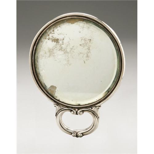<B>An American Silver Hand Mirror</B></I><BR><B>Simons, Bros. & Co., Philadelphia, PA, Early Twentieth Century</B></I><BR><BR>Monogram to the reverse <I>JED,</B></I> hallmark to the side with <I>STERLING 287X</B></I><BR>6.3in. long x 4.9in. wide1 Items <BR><BR><B>Condition Report:</B> Normal signs of wear as appropriate with age; the silver backing on the glass is deteriorated.