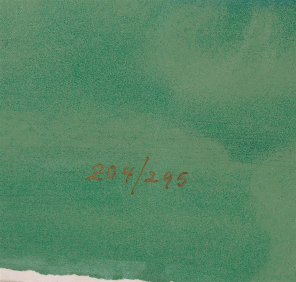 Classic in its beautiful palette of soft and subtle colors, this limited edition serigraph, by Hessam Abrishami, is a large vintage print on deckled-edged fine art paper from his early career. Like most of Hessam's imagery it captures the movement and romance of life. Limited Edition S/N Serigraph on Paper #205/295.