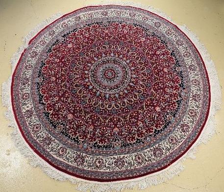 A Sino Persian Isfahan Round Wool Rug. 8 ft x 8 ft