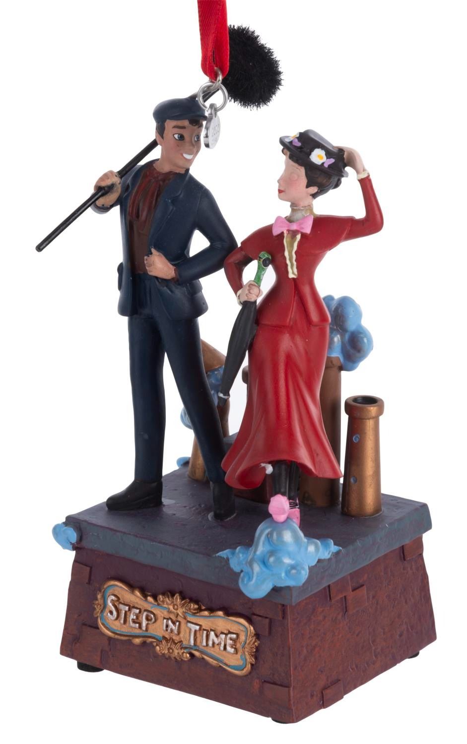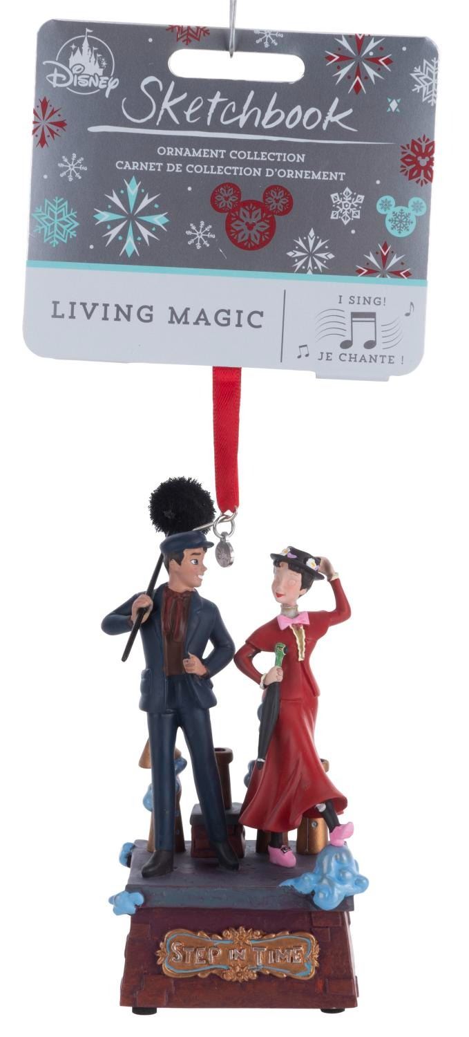 (Disney, 2020) A Sketchbook Ornament of"Mary Poppins" featuring Bert and Mary on the rooftops of London. A musical feature plays"Step in Time" when pressed, requiring new batteries to function fully. The ornament is in fine condition.