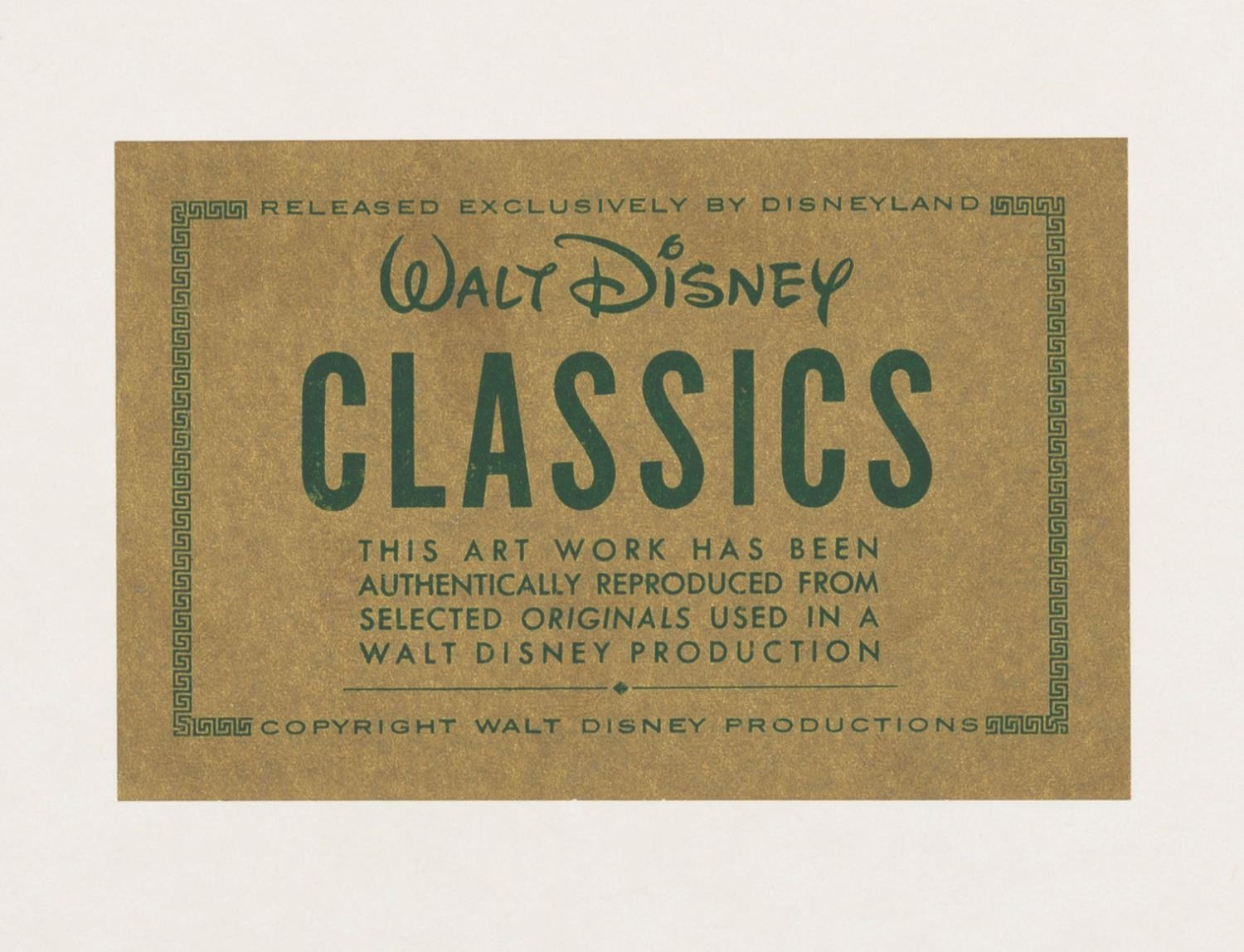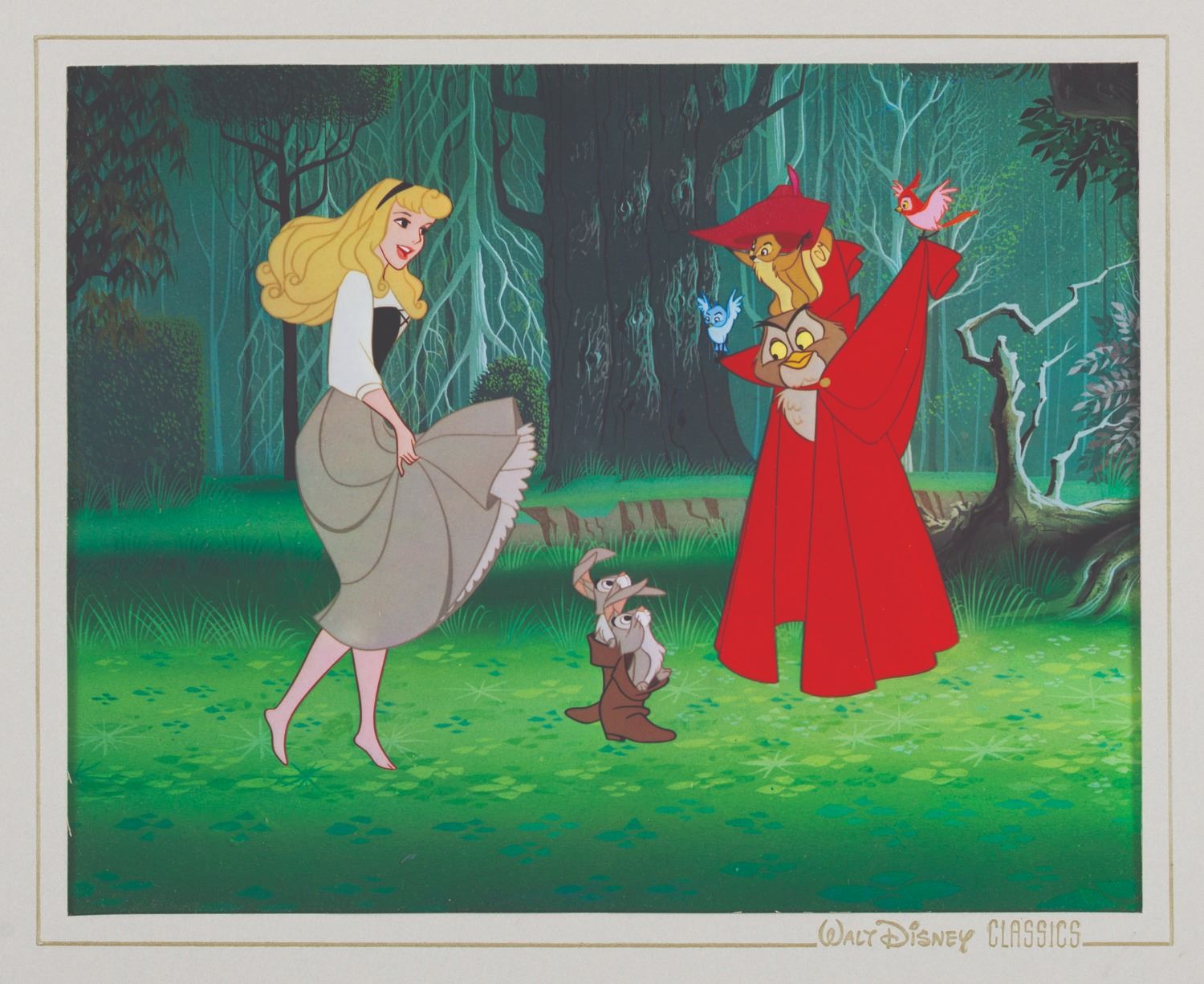 (Disney. 1959) A Photographic Dye Transfer of a scene from Walt Disney's"Sleeping Beauty." These high-quality photographic reproductions were originally sold at the Disneyland Art Corner. This piece retains the original mat and"Walt Disney Classics" gold label on the reverse. The artwork measures 12"x10" within a 14"x12" mat and is in fine condition.