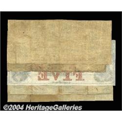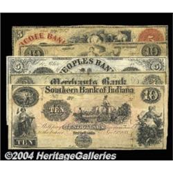 A Small Assortment of Obsoletes from Diverse LocalesTerre Haute, IN - Southern Bank of Indiana $10 Nov. 1, 1853 G8a VF (aged, tape)Ft. Leavenworth, KS - $3 Aug. 21, 1854 G4 VFSt. Paul, MN - Peoples Bank $5 remainder G8a AUAttleborough, MA - Attleborough Bank $10 May 1, 1864 C24a FineCleveland, TN - Ocoee Bank $5 Oct. 24, 1859 G24c Fine 5 notes <BR><BR><B>Important notice:</B> Heritage usually auctions material at the rate of 200-250 lots per hour. On some occasions eBay Live bid software or the Internet may not be able to keep up with the pace of the auction. We recommend placing a realistic absentee bid now as insurance to avoid disappointment. Occasionally the auctioneer may eliminate or reject an eBay Live bid, and the auctioneer may also reopen a lot after the close of the eBay live bidding (usually because we missed an audience bid), and may reject your bid even if it shows you as the winning bidder. By bidding via eBay Live, you agree that Heritage may award the lot to another bidder at its sole discretion under the circumstances described above or any other reasonable circumstances. Since eBay bids are not shown to us until we open the lot on the floor, we treat those bids just like floor bids. In most cases the floor responds before the eBay bid is presented to us, due to Internet lag time, so for consistency we have made it a policy that floor bids are always considered first over tie eBay live bids. Also please note that all Heritage lots purchased through eBay Live carry a 20% Buyer's Premium. Please make sure you read the Terms and Conditions before you bid. <BR><BR><B>IMPORTANT ANNOUNCEMENT ABOUT RESERVES:</B> Heritage now divulges all reserves on its web site 7 days before every auction. If you want to know whether the reserve on this lot has been met, and if not, what the reserve amount is, please visit this lot page on the HeritageCoin.com web site, or email: bid@HeritageGalleries.com