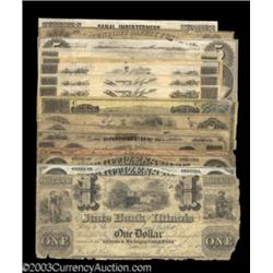 <TABLE cellSpacing=0 cellPadding=0 width="100%" bgColor=#000000 border=0><TBODY> <TR><TD width="100%"><TABLE cellSpacing=1 cellPadding=3 width="100%" border=0><TBODY><TR><TD width="100%" bgColor=#79735c><FONT face=arial color=#ffffff size=3><B>Description</B> </FONT></TD></TR><TR><TD width="100%" bgColor=#ffffff><FONT face=arial size=2><B>A Small Hoard of Midwestern Obsoletes</B></I><BR>Lockport, IL - Illinois and Michigan Canal $100 Canal Indebtedness Certificate July 1, 1842 Unc. CC<BR>Lockport, IL - State Bank of Illinois $1 May 1, 1841 VG CC<BR>Gosport, IN - Citizens Bank $2 July 1, 1857 G4a (2) VF, VG, repaired<BR>Hartford, IN - Manufacturers Bank $10 Dec. 1, 1858 G8a VG, repaired<BR>Lexington, Indiana Territory $5 June 26, 1815 G16 VG<BR>New Albany, IN - Southern Bank $5 March 1, 1859 G6 VG, repaired<BR>Rensselaer, IN - Bank of Rensselaer Jan. 2, 1854 G2 VG; $5 Jan. 2, 1854 G4 VG<BR>Richmond, IN - A.H.B. Co Ad Note on Confederate Facsimile<BR>Frankfort, KY - $1 Frankfort Bank remainders G12 AU; $3 remainder G14 Unc.<BR>$5 remainder G16 Unc; $10 remainder G18 Unc.<BR>Frankfort, KY - Farmers Bank of Kentucky Oct. 2, 1859 C176 VF, repaired<BR>Newport, KY - Bank of Kentucky $2 Feb. 2, 1853 G4a VG. (325-425 ) (17 notes) </FONT></TD></TR></TBODY></TABLE></TD></TR></TBODY></TABLE><BR><TABLE cellSpacing=0 cellPadding=0 width="100%" bgColor=#000000 border=0><TBODY><TR> 17 notes Important notice: Heritage usually auctions material at the rate of 200-250 lots per hour. On some occasions eBay Live bid software or the Internet may not be able to keep up with the pace of the auction. We recommend placing a realistic absentee bid now as insurance to avoid disappointment. Occasionally the auctioneer may eliminate or reject an eBay Live bid, and the auctioneer may also reopen a lot after the close of the eBay live bidding (usually because we missed an audience bid), and may reject your bid even if it shows you as the winning bidder. By bidding via eBay Live, you agree that Heritage may award the lot to another bidder at its sole discretion under the circumstances described above or any other reasonable circumstances. Also please note that all Heritage lots purchased through eBay Live carry a 20% Buyer's Premium. Please make sure you read the Terms and Conditions before you bid.</TR></TBODY></TABLE>