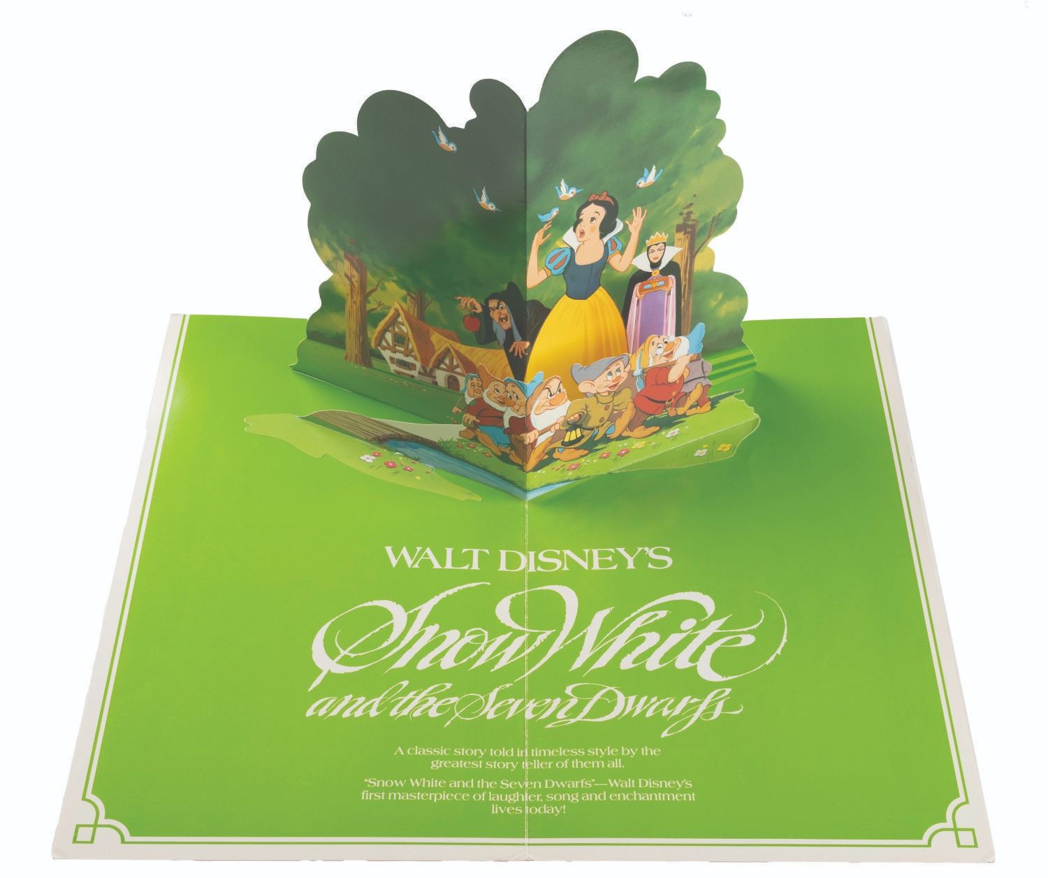 (Disney, 1983) A pop-up ad for the 1983 re-release of “Snow White and the Seven Dwarfs.” Measuring 8.5” x 14”, and 14” x 17” x 10.75” tall when opened, the ad is in very good condition with light scratches, edge wear, and a 0.75” scuff on the cover.
