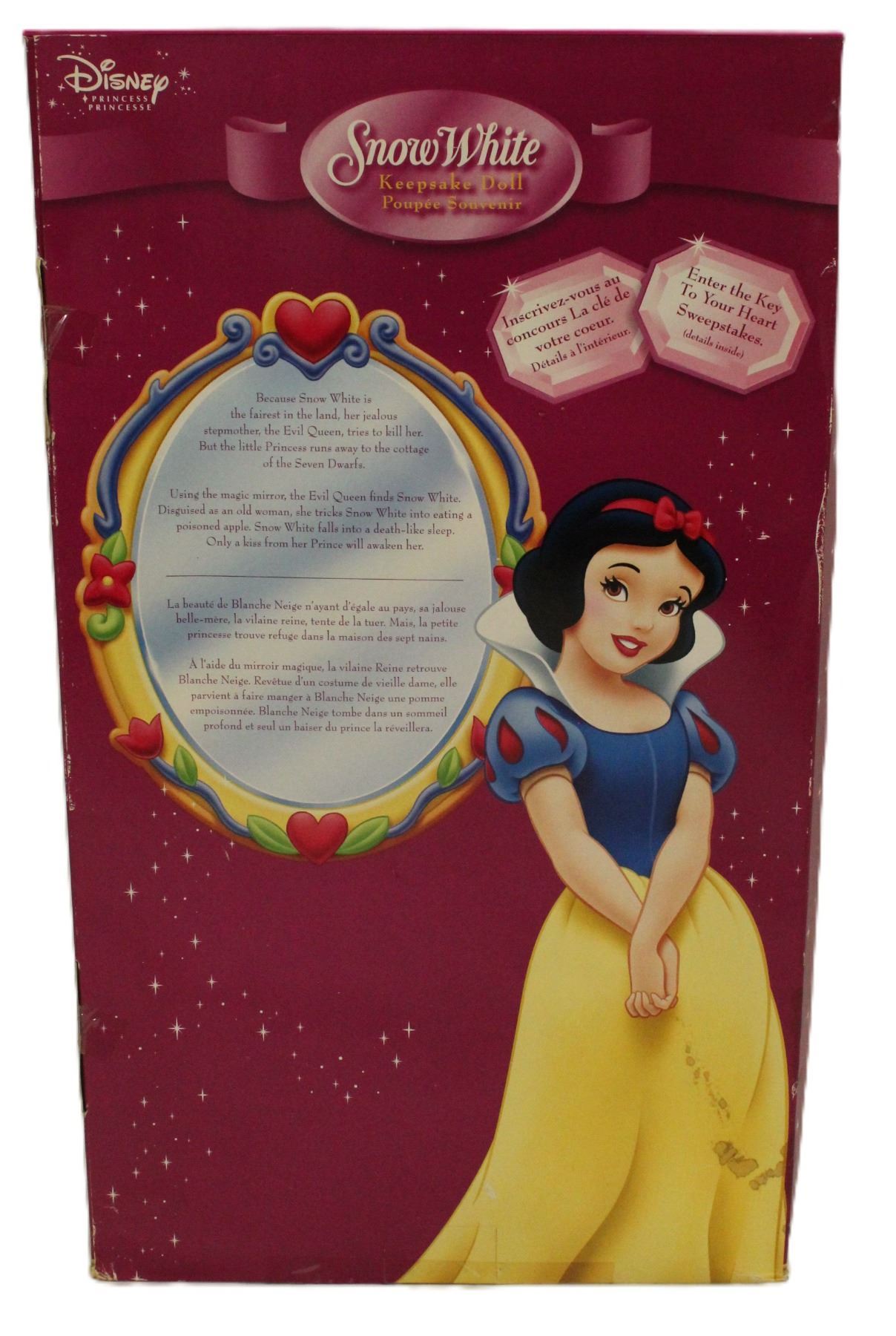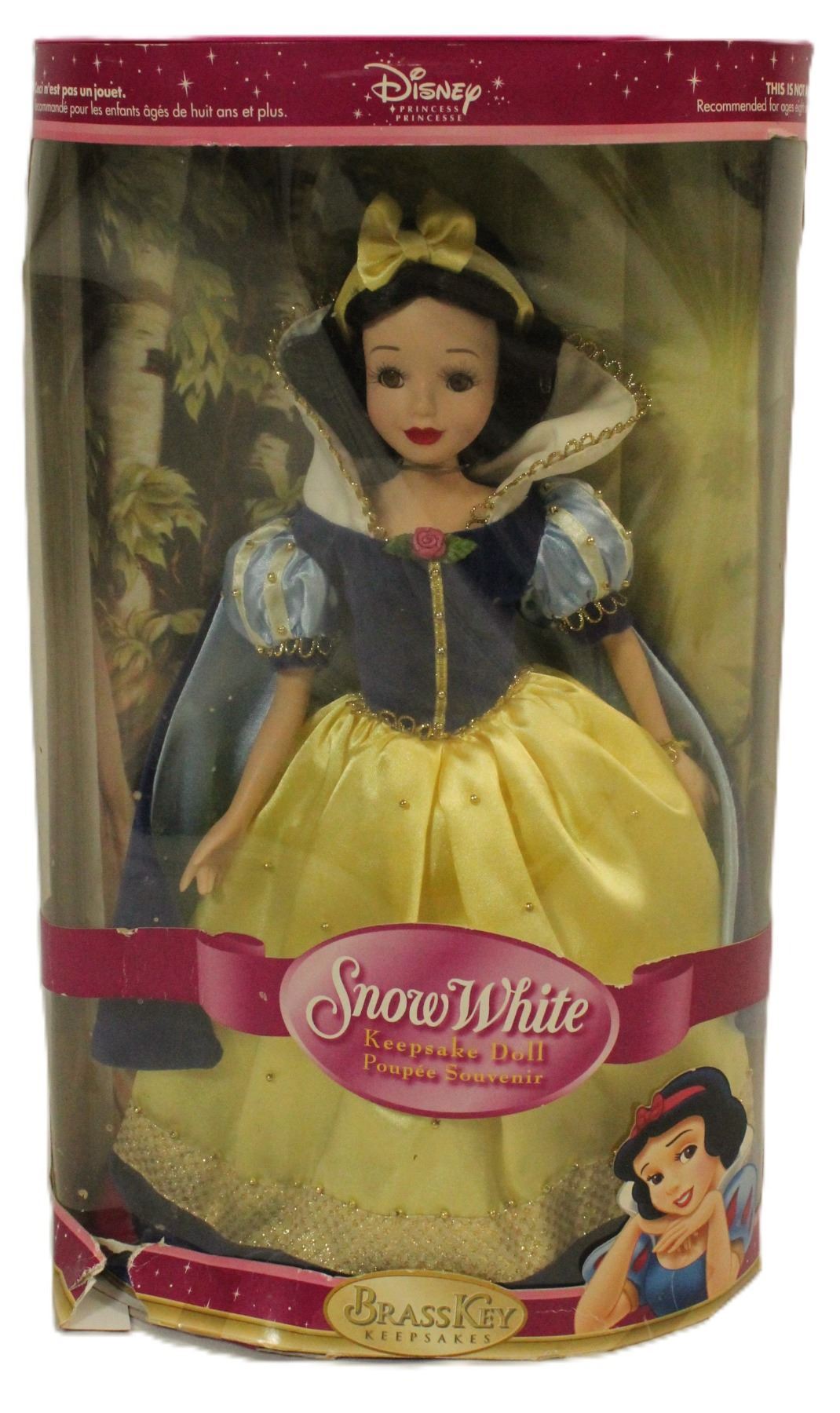 (Brass Key) This is a Snow White Doll by Brass Key. She is wearing the classic Blue and Yellow Dress. Part of the Disney princess collection, she stands ~ 14" tall. The item is new in box. The box does have damage on the bottom and the plastic surround is bent.