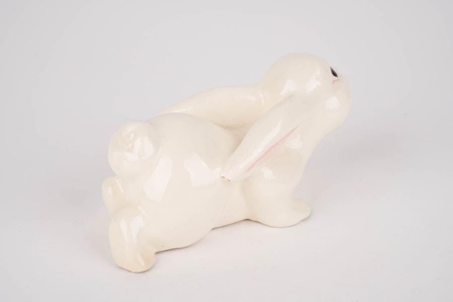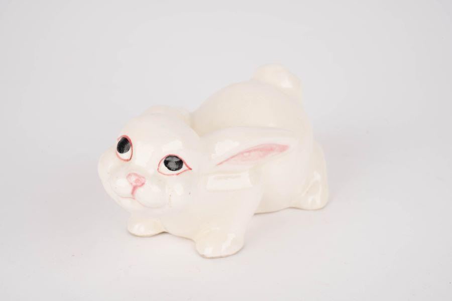 (Brayton Laguna, 1938) A ceramic figurine of a white rabbit inspired by Walt Disney’s "Snow White and the Seven Dwarfs," by Brayton Laguna. The ceramics manufacturer was the first in California to have a licence to produce Disney character pieces. Measuring 5" x 2.5" and 2.5" tall, the figurine is in very good condition with minor production imperfections in the glaze.