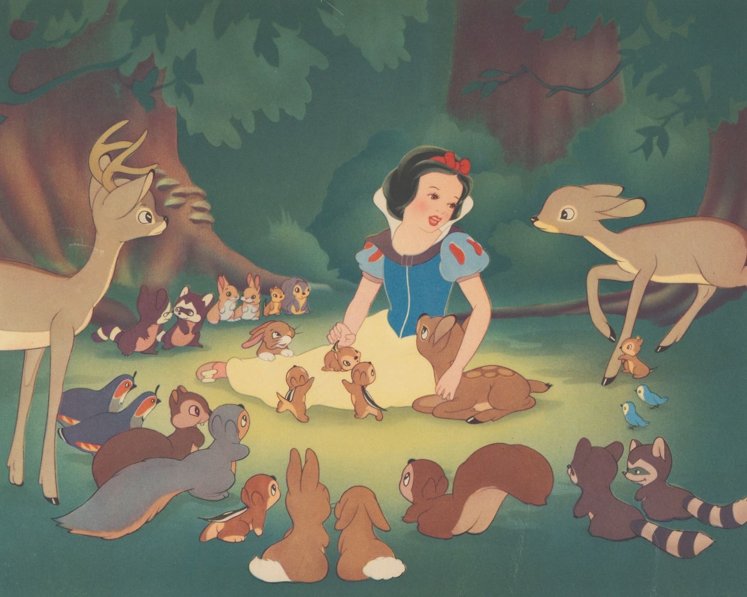 (Disney, 1950s) A Disney Studio photographic dye transfer of a scene from “Snow White and the Seven Dwarfs.” Dye transfers such as these were given as gifts to visitors of the Studio and sold through the Art Corner at Disneyland. This transfer was given to Bob Clampett by Walt Disney upon the birth of his son. With an image size of 8” x 10” on 10” x 12” heavy paper, the dye transfer is in good condition with scratches, stains, and discoloration from age.
